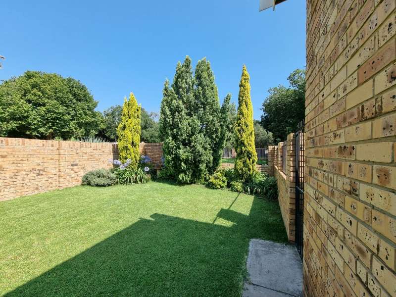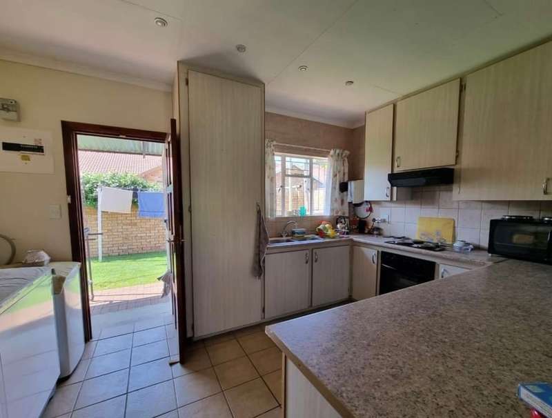 2 Bedroom, Full Title Townhouse in Flamwood! Lush green lawn stretches out towards the unit as you enter the gate. Making the front patio the perfect spot to enjoy the late afternoon rays. The unit has an open living floorplan with the living and kitchen area. Kitchen is spacious with ample working space, breakfast counter, undercounter oven with hob and extractor. Down the hallway – linen cupboard, 2 bedrooms and 2 bathrooms with one being an ensuite in main bedroom. At the back is steel storage unit for garden equipment. Right at the front of the property, completely free from the unit is a double garage, with motorized wooden garage doors. Property is enclosed on all sides.