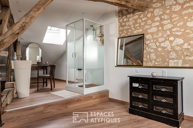 A few steps will lead you to a renovated mezzanine, offering a real haven of relaxation, perfect for reading and daydreaming. This space, resulting from the transformation of the neighboring barn, brings an atypical note to this residence full of history.