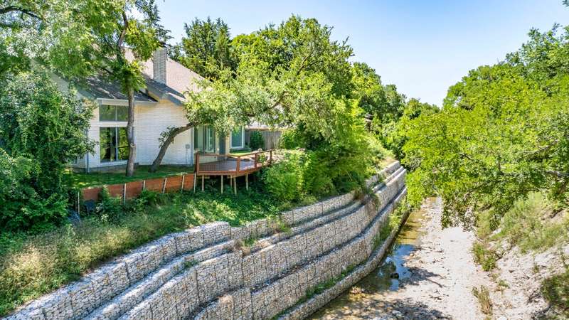 This 3 bedroom 2.1 bath home is perfectly situated on a treed creek lot and cul-de-sac street zoned to the desirable Wallace Elementary. Open floorplan and an abundance of windows make for a light and bright space amoungst the trees right on the creek. Recent updates include paint, countertops, stainless kitchen appliances, carpet,landscaping, roof and gutters (as of June 2025).Thishome is ready foryou to make it your own. Don't miss out on this fabulous homein an amazing Lake Highlands location.