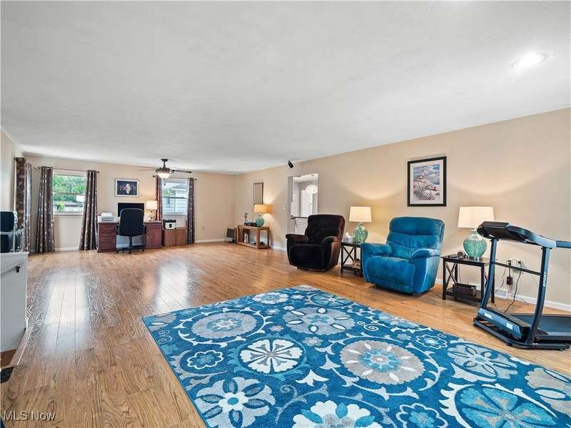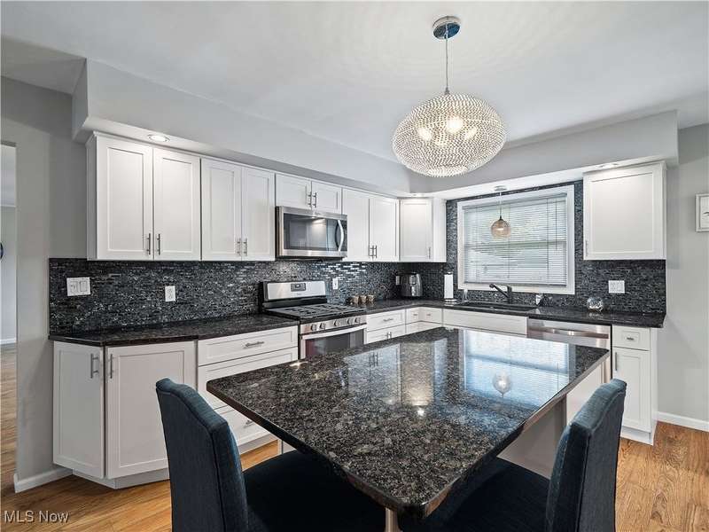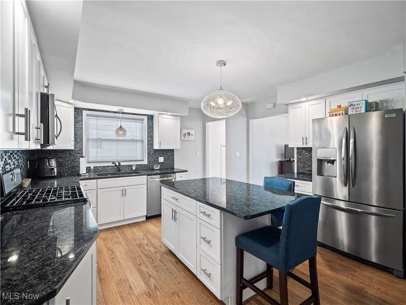 Welcome to this beautifully updated two-bedroom, two full bath ranch home featuring an inviting open floor plan and a huge great room complete with a gas-starting wood-burning fireplace. Nestled in a quiet neighborhood, you're also just a stone's throw away from the home of the Cleveland Browns. With elegant granite countertops, brand new Pergo professional floors, a three-car heated garage, a large fenced-in backyard, and a handy storage shed, this home is just waiting for your personal touch to make it truly yours.