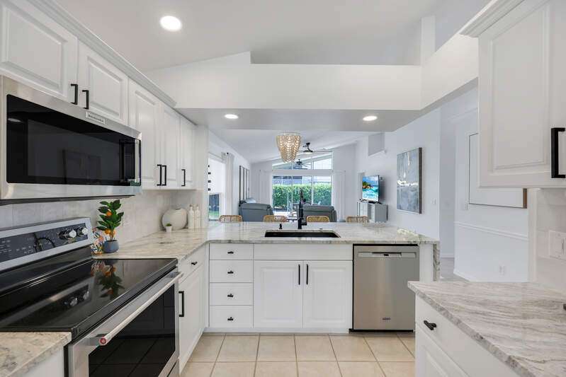 Welcome Home! Step inside this Move-in ready and beautifully updated 3BR/2BA home in the desirable gated community of Weybridge at Imperial Golf Estates. This light-filled residence features an open floor plan, high ceilings, a renovated kitchen with quartz counters, stainless steel appliances, and custom cabinetry. The spacious primary suite includes custom closets and a modern bath with dual vanities and walk-in shower. Enjoy a private screened lanai, newer roof, tankless water heater, and a 2-car garage. Community amenities include pool, clubhouse, and optional golf membership. Prime North Naples location close to beaches, shopping, dining, and top-rated schools. Schedule your showing today!