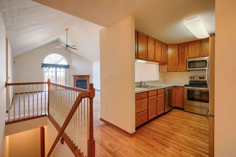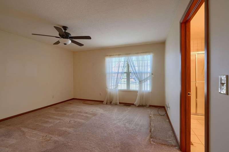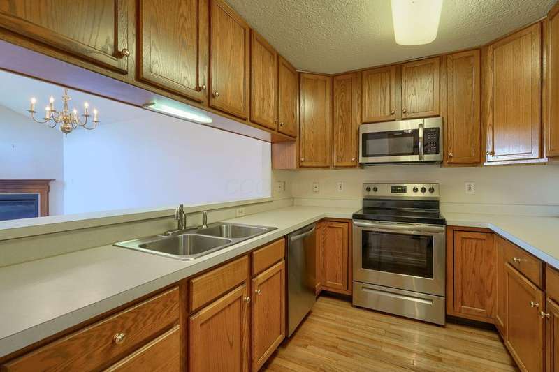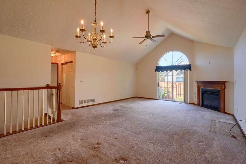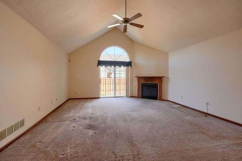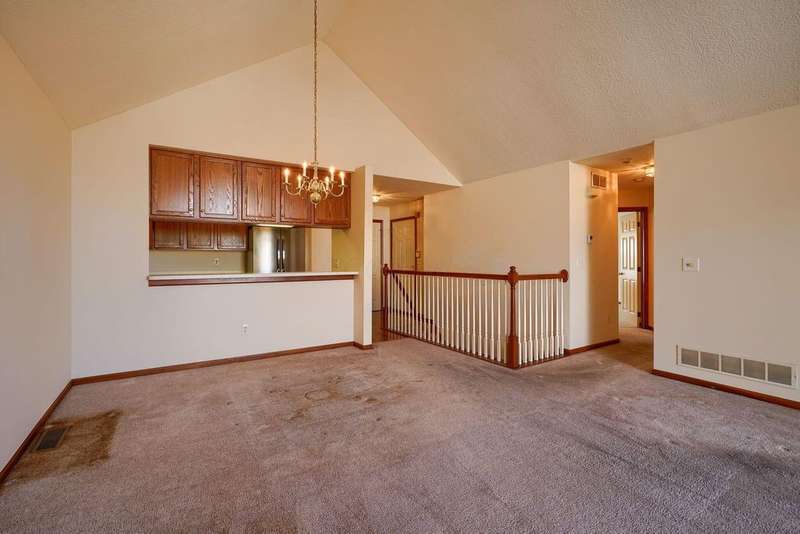 Welcome home to this ranch style condo in the heart of town! This condo features a nice kitchen with stainless steel appliances, that overlooks a large family room with soaring ceilings and a gas fireplace! Two large bedrooms and two full baths! Basement with lots of storage too! Enjoy your days on the private patio! Two car garage! This condo just needs a little tlc and is awaiting your finishes! ''AS IS''