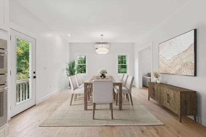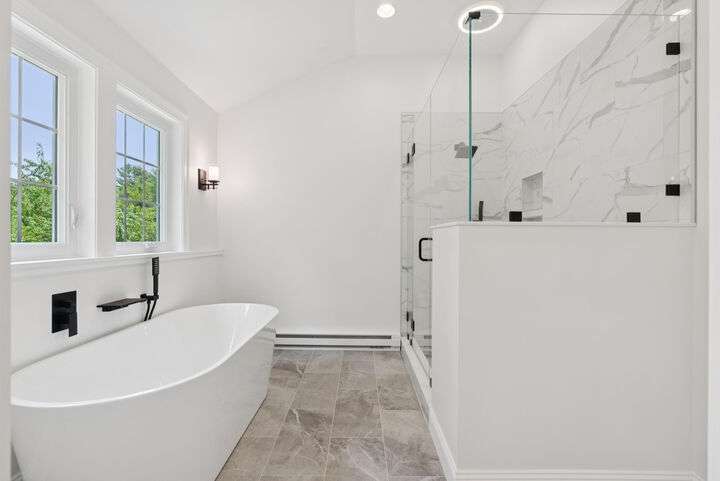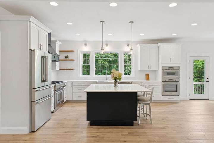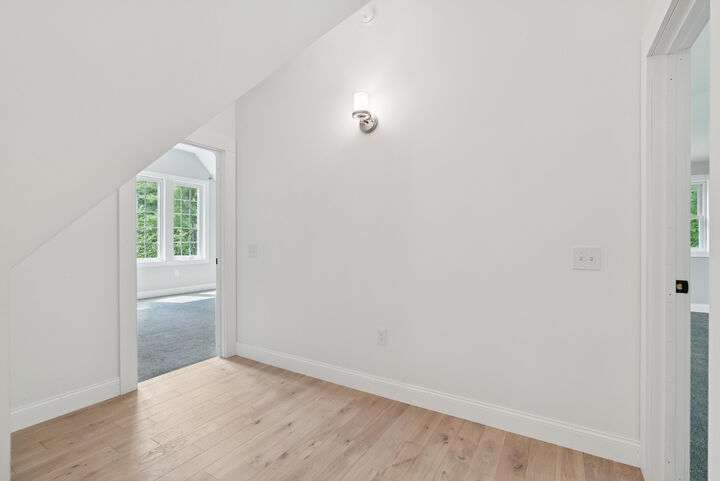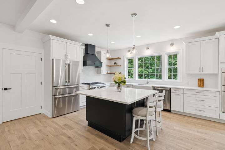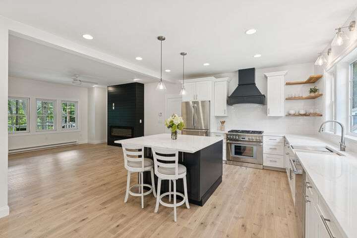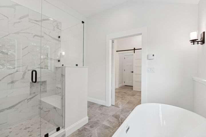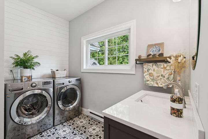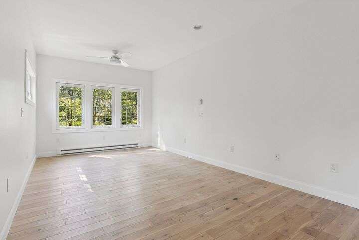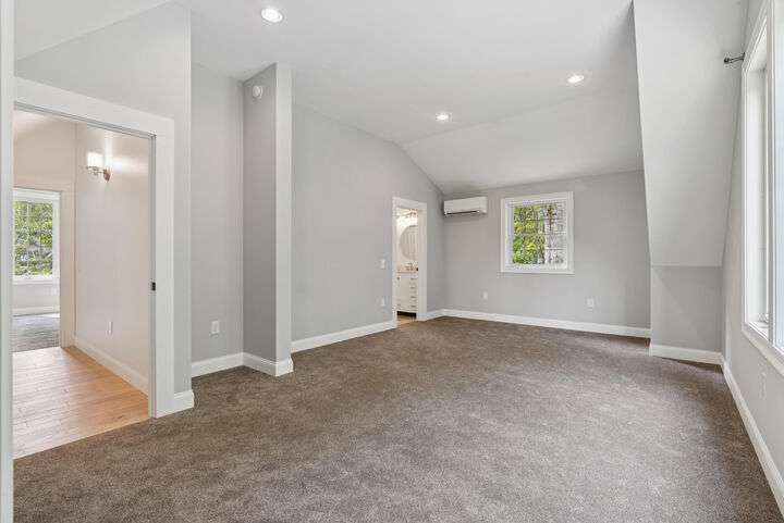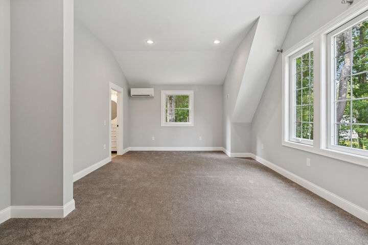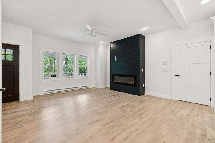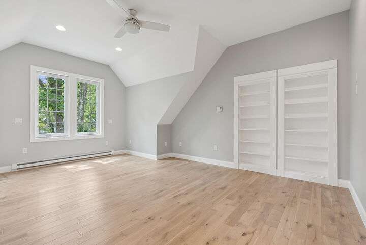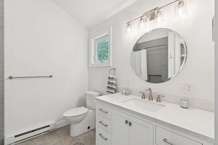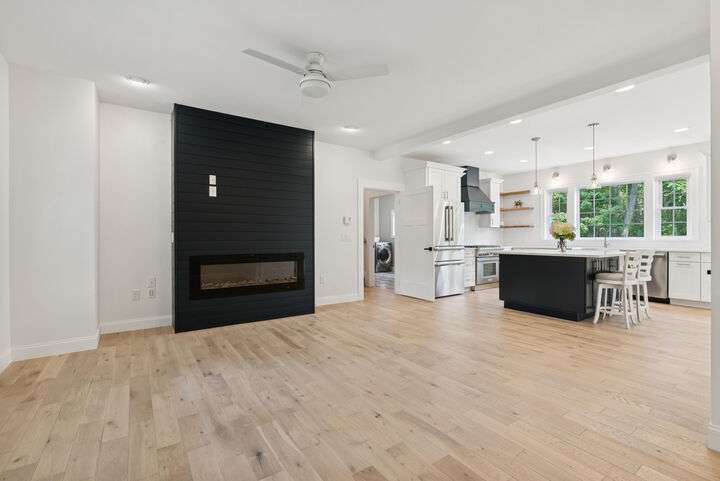 Just 1 mile to Kennebunk's beaches and Dock Square, this stunning home perfectly balances timeless craftsmanship with modern comfort. Offering 4,128 sq ft of thoughtfully designed living space, it welcomes you with an open-concept first floor featuring 9' ceilings, French oak hardwood floors, and abundant natural light. The gourmet kitchen is a true centerpiece with quartz counters, an oversized navy island, white cabinetry, farmhouse sink, walk-in pantry, and high-end appliances. It flows seamlessly into the dining and living areas, complete with a cozy electric fireplace (propane ready), a sun-filled sitting area with deck access, and a spacious family room. Upstairs, 10' ceilings enhance the sense of openness. The luxurious primary suite impresses with hidden walk-ins tucked behind custom bookshelves and a spa-like bath with tiled shower, soaking tub, double quartz vanity, and private water closet. A versatile bonus room with natural light adds functionality, while two ensuite bedrooms—each with private baths—ensure comfort for family or guests. The oversized heated and cooled garage is fully finished with painted walls and trim, and the finished lower level expands your living space. Outdoor living shines with a sunny deck, fire pit, and a charming 'she shed' with cathedral ceilings, shiplap walls, and its own deck. Set in a peaceful location yet just minutes from town and the beach, this is a home designed to be lived in and loved.