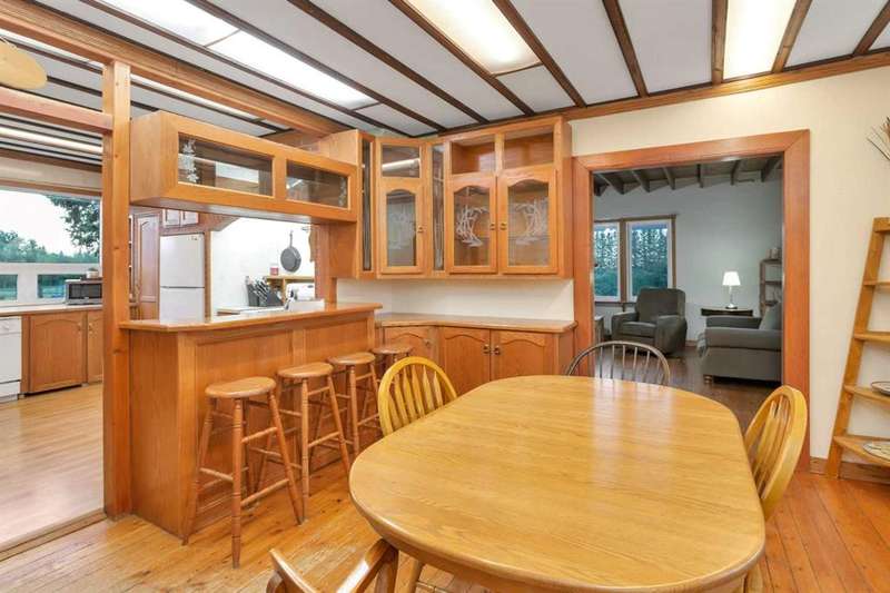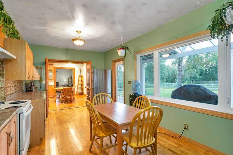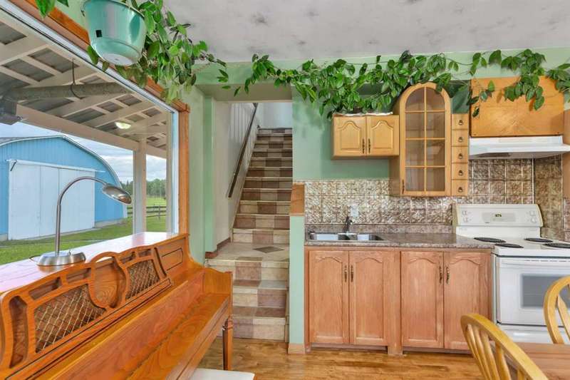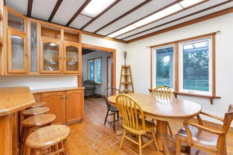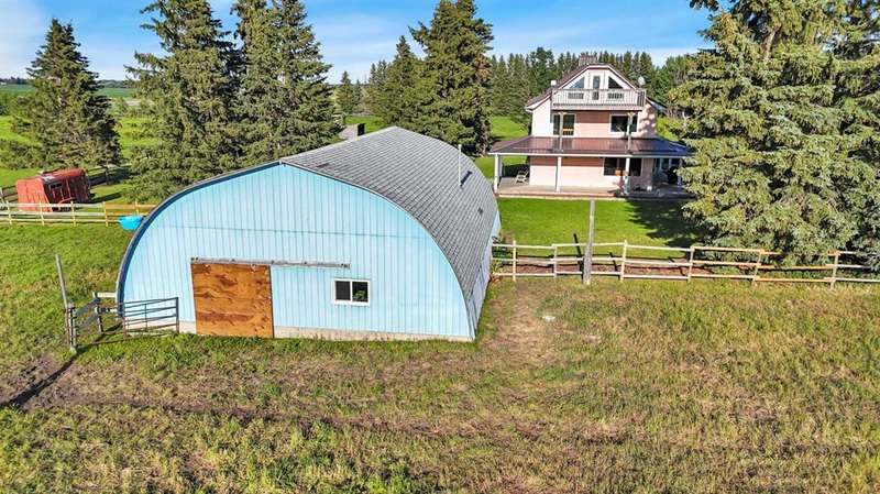 Escape the ordinary & embrace the lifestyle you’ve been dreaming of on this stunning 8.2-acre property in the heart of Mountain View County. With nearly 3,000 sq ft of developed living space, multiple living areas, & outbuildings. This property offers the perfect blend of country comfort & stylish adaptability. The 2½-story home is filled with natural light & warmth, featuring spacious gathering areas designed for connection & comfort. The main living room, with its cozy wood-burning stove, is ideal for family nights or entertaining friends. A formal dining area flows easily into the large, well-equipped kitchen, complete with beautiful solid oak cabinetry, ample counter space, & a brick-accented stove alcove that adds rustic character. A second full kitchen opens the door to endless possibilities- perfect for multigenerational living, guests, or even a short-term rental suite. With two primary suites, two additional bedrooms, & a third-floor loft (ideal for a studio, office, or guest space), this home adapts beautifully to any lifestyle. Enjoy your morning coffee or evening wine from the west-facing balcony with breathtaking views of open fields & mountain sunsets, then unwind in your private sauna for the ultimate relaxation. Outside, the property shines. A massive 35’7” x 48’4” Quonset doubles as a workshop, garage, & barn, complete with a tack room and 748 sq ft mezzanine for added storage or workspace. The land is fully fenced & cross-fenced, with paddocks & a stock waterer already set up-ready for horses, livestock, or your country lifestyle dreams. Whether you’re looking for space for your family, room for your business or hobbies, or a peaceful retreat just minutes from town, this property has it all. Move in. Stretch out. Live the acreage life you deserve. “Home Is Where Your Story Begins!”