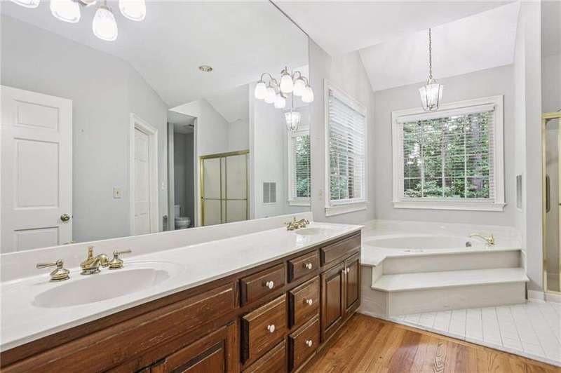 A-DOR-A-BLE original owner custom home in Oakton on North Saint Marys Lane!! Gorgeous +/- 1 acre landscaped level yard that is wooded in the back. Tall ceilings on the main level, with beautiful real wood hardwoods throughout. Large kitchen with island, laundry room, formal living room plus a large den. 3 Bedrooms up (including a second primary suite) and a huge attic perfect for storage or expanding into. Full unfinished basement with 2 different garage bays down there. A shop, storage, flex space.... all the perfect space to finish, reno, or a Car Guy/Gal's dream! The home features a 2 car garage on the main level, and then the driveway continues around to the back terrace level where there are two additional garage bays. 2 YEAR OLD ROOF, 3 YEAR OLD HVAC, HARDWOODS WERE REFINISHED IN 2021. This is one of the most desirable streets in the City of Marietta featuring a close-knit community of custom homes, right up against Kennesaw Mtn National Park.