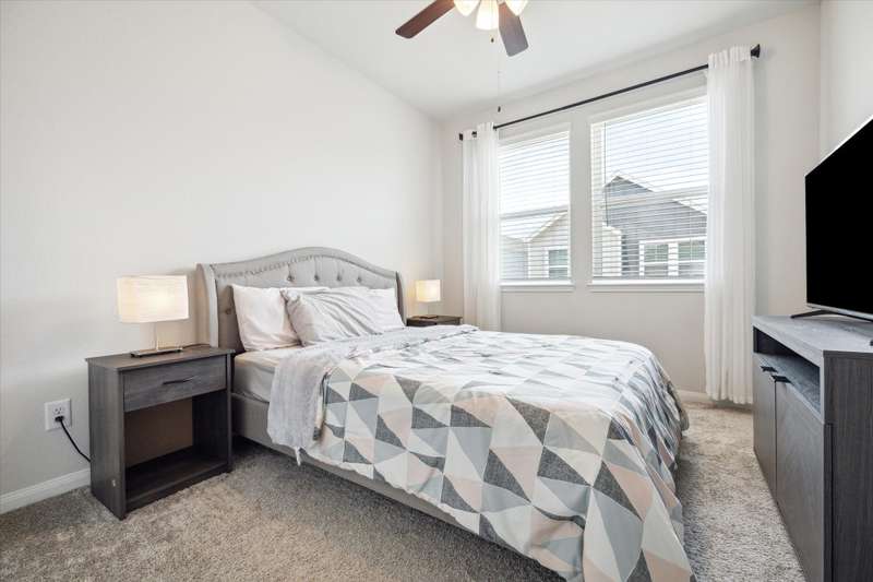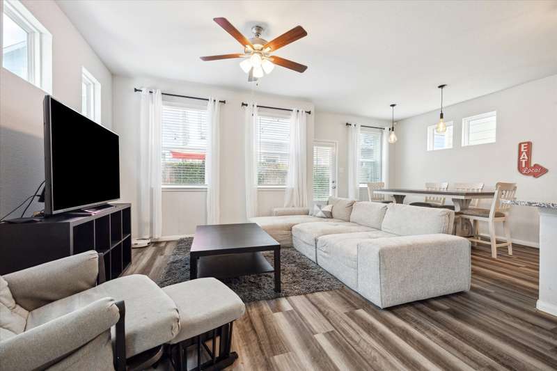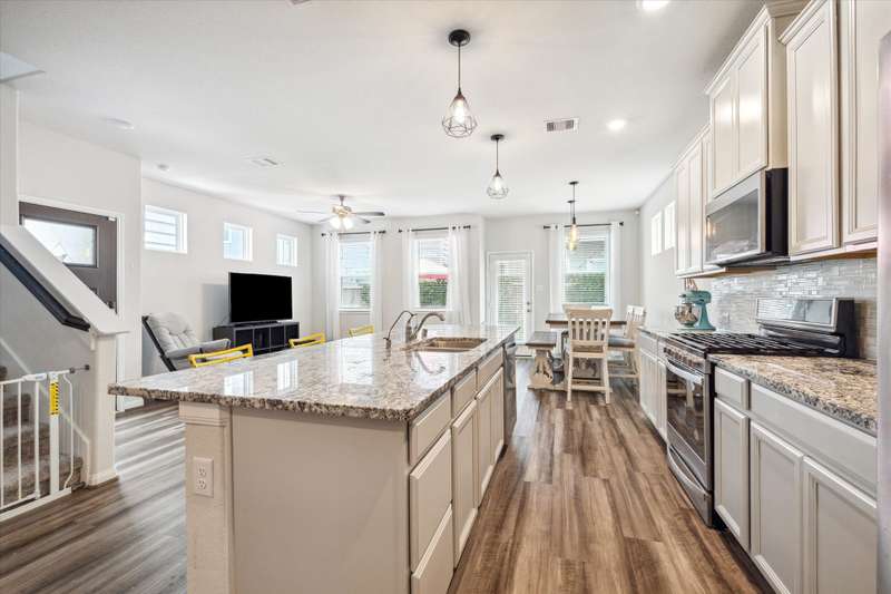 Looking for an appealing home close to Downtown, U of H or the TMC in a gated community? Look no further than 5438 Cuerta! This charming recent three bedroom, two and a half bath home boasts first floor living with an open floorpan. The light and bright kitchen, living and dining are on trend with pendant lights at the island. Quartz counters and stainless appliances add to the appeal. Charming backyard space benefits from a recent deck for entertaining and relaxing. The second floor is bathed in natural light from windows in the stairwell and the bedrooms. The primary suite is generous with a spacious bath and large closet. The secondary bedrooms have generous walk-in closets as well. A quaint desk area is a plus at the top of the stairs. Appliances,trash and yard maintenance are included with this lease.Patio furniture and grill remain. The community offers a covered pavilion with grill, fire pit and dog park! All info per owner