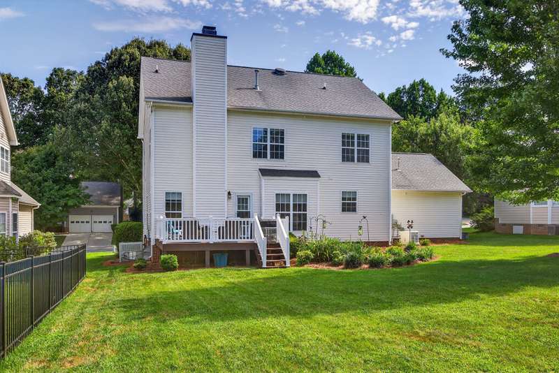 SELLER OFFERING $4000 CREDIT for flooring upstairs. This spacious 4-bedroom, 2.5 bath home in Jamestown sits on a beautifully level lot and offers room to grow with an unfinished third floor that could add approximately 548 additional square feet of living space. Step inside and you'll find a thoughtfully designed layout featuring a formal living room, dining room, and a cozy den, leaving options for office space or playroom. The kitchen is both stylish and functional with granite countertops and ample workspace, while all bathrooms have been tastefully updated with granite counters for a modern touch. Main floor features vinyl plank throughout. Out back, enjoy peaceful mornings or host summer get-togethers on the deck overlooking the backyard. With curb appeal, updates, and the potential for even more living space, this home has it all. Home has a whole house generac generator.