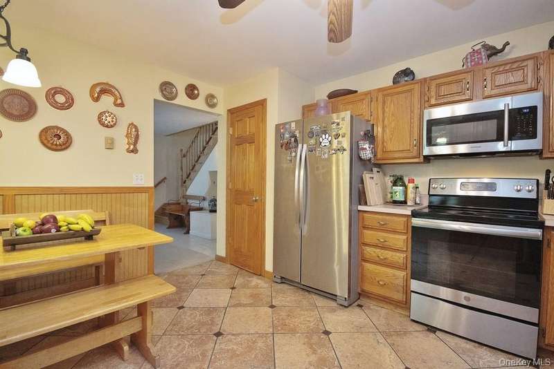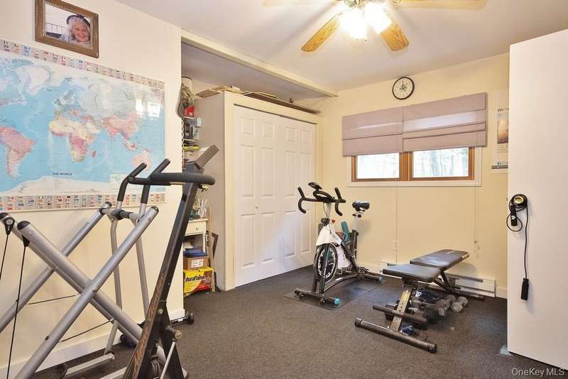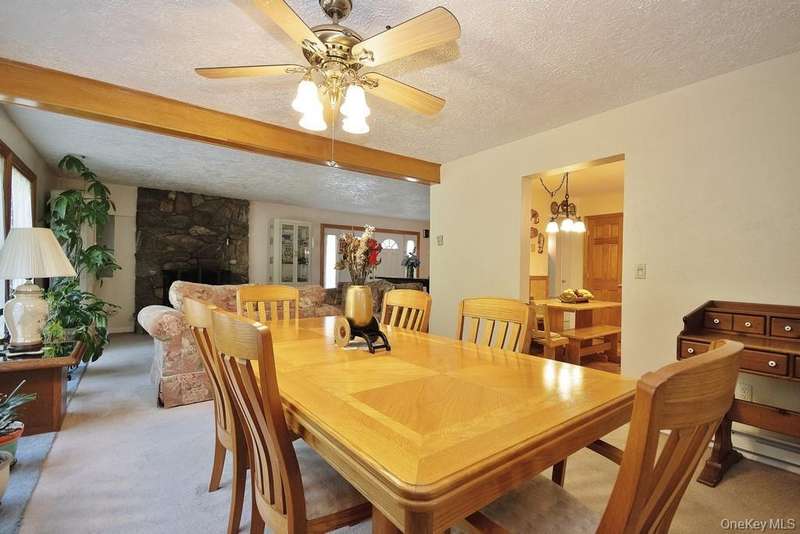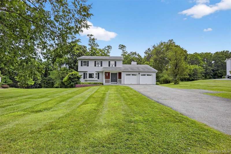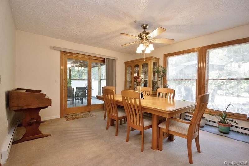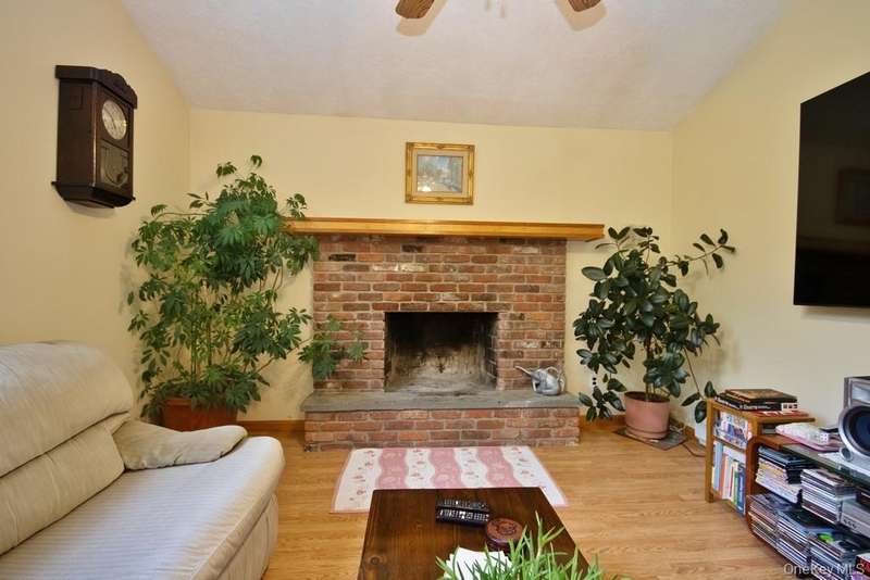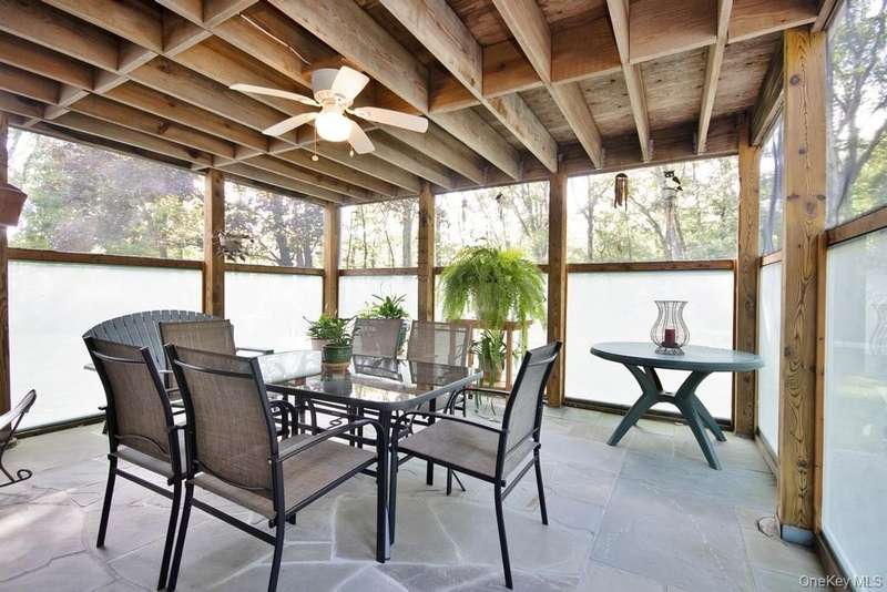 Beautifully maintained 4 bedroom contemporary colonial on private 1.67 acres of parklike property but still conveniently located to major highways, train, schools and shopping. Long driveway with house set back from road. Open floor plan with lots of windows, formal dining room which leads to large screened-in porch that has insulated glass for winter overlooking 42x18 stone patio with a built-in-BBQ fireplace. Perfect for entertaining or just enjoying nature in the privacy of your own backyard. Home is so well insulated that the first floor feels like there is central air without the cost of air conditioning. Living room has charming stone fireplace, eat in kitchen, main floor bedroom, half bath, utility room/laundry/exercise room. Second floor has large primary bedroom/full bath, two other good size bedrooms, plus beautiful family room with full bath, fireplace, cathedral ceiling, sliders to private deck overlooking property. This room would make a spectacular primary bedroom. This