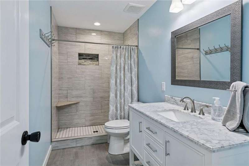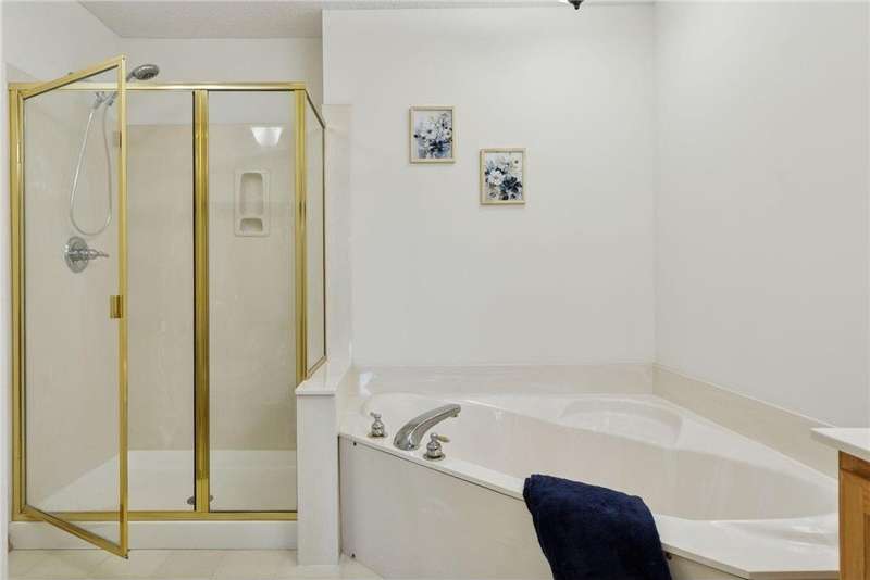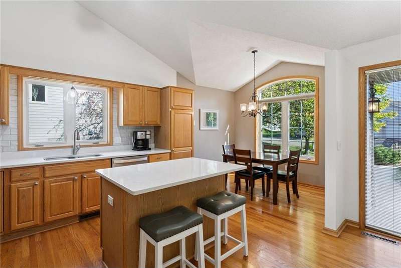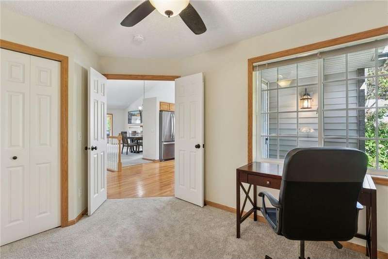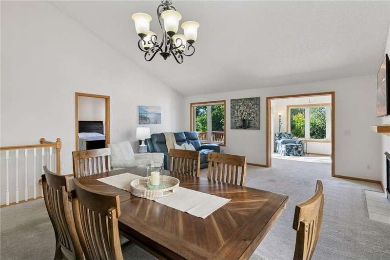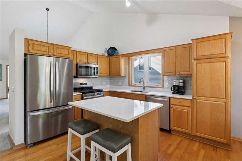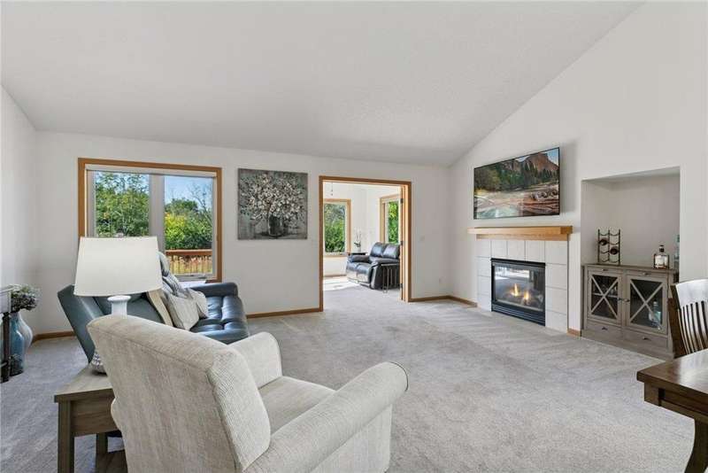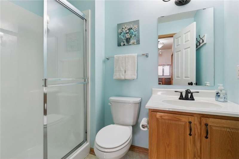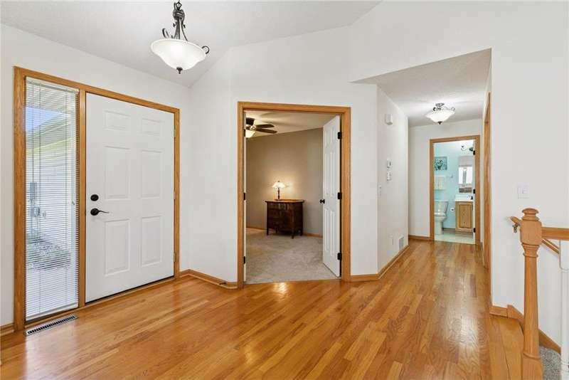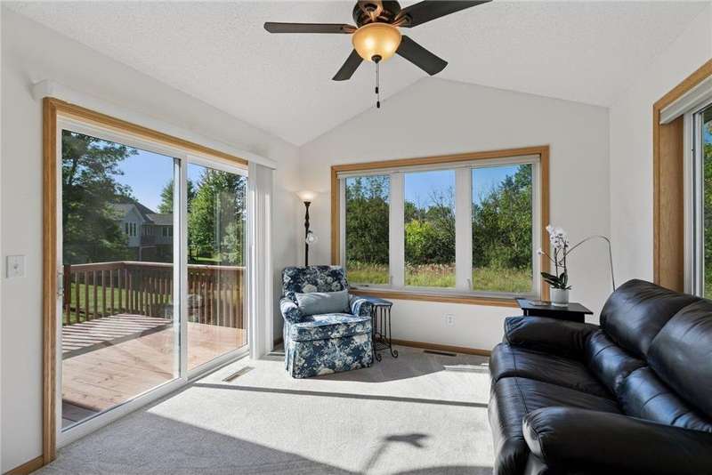 Enjoy the ease of one-level living in this beautiful townhome! The open floor plan features a bright eat-in kitchen with center island, quartz countertops, tile backsplash, and plenty of cabinet space, kitchen flows comfortably into the living and dining areas. The sunroom fills with natural light and offers the perfect spot to relax, while the primary suite includes a spa-like bath with double vanity, separate tub and shower, and walk-in closet. A home office and laundry add convenience. The lower level provides a cozy family room, bedroom, and 3/4 bath. Step outside to your private deck or patio for outdoor living. With the recent updates - Roof, furnace/AC, water heater, quartz countertop, tile backsplash (2023) appliances (2021), abundant storage and move-in ready condition, this home combines practical one-level living with comfort and style!