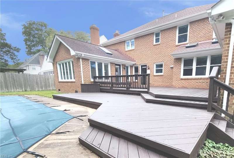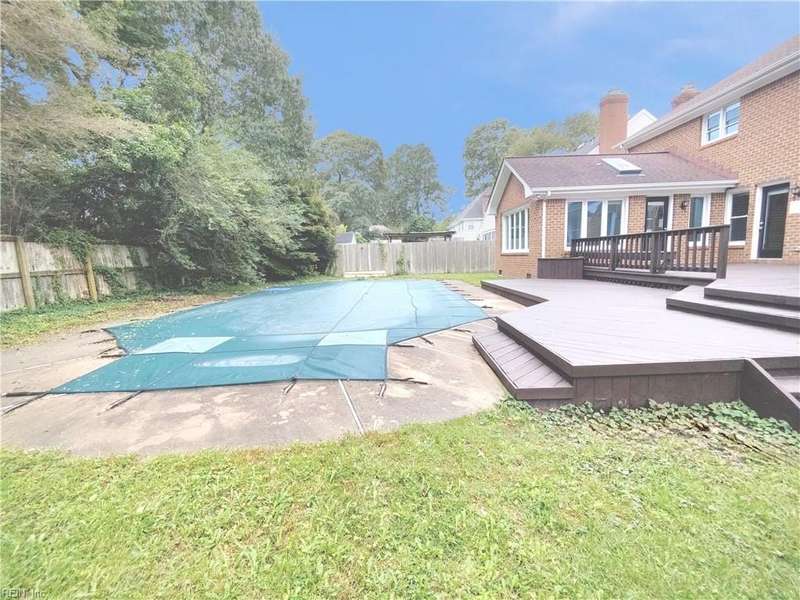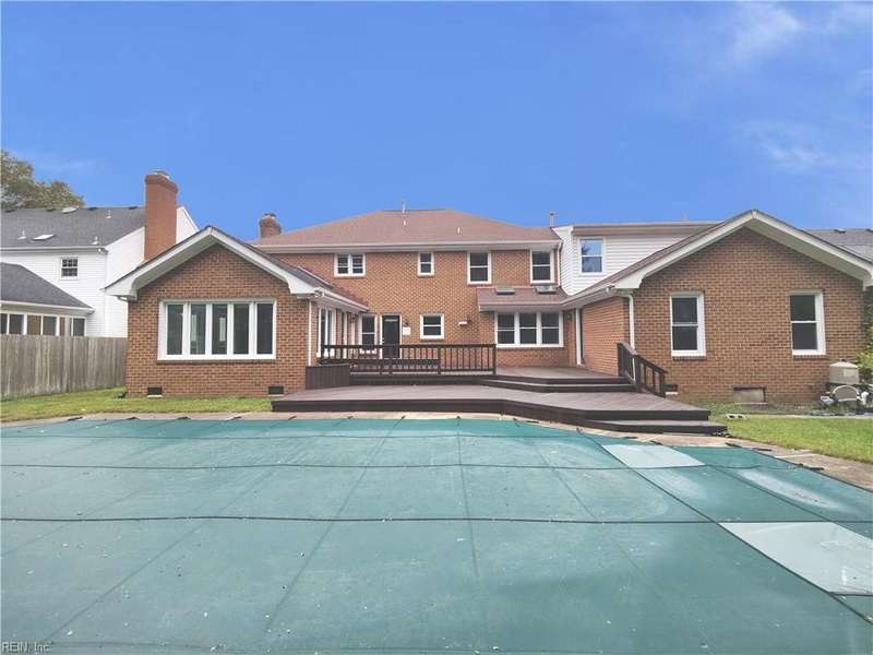 Stunning Bellamy Woods brick traditional home. Over 4,500 square feet with a custom deck and inground pool. Foyer entrance. Office area with French doors. Formal dining room, family room with gas fireplace, and Florida room with cathedral ceiling. Spacious, updated eat-in kitchen with granite counters and center island. Primary bedroom with ensuite jetted tub and separate shower. Downstairs full bedroom with private bath. Six bedrooms, including the finished room over the garage. New paint and carpets. Central Kempsville location with nearby shopping and dining.