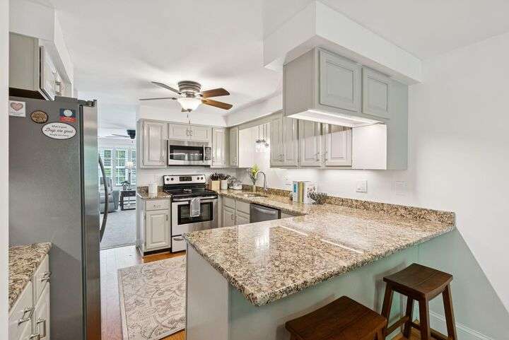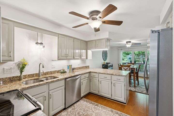 OPEN HOUSE CANCELED! Move right in and enjoy this beautifully updated townhouse in Portland's sought-after Ledgewood community, located in the desirable North Deering neighborhood! Nearly every detail has been refreshed — all-new tiled bathrooms (including a spacious en-suite), new heat pumps, brand new carpet, a slider glass door to the private back deck, custom built-in cabinetry, and the popcorn ceilings removed. The open kitchen and living area shine with updated countertops, backsplash, and new appliances, while a first-floor den offers flexible space for a home office, hobby room, or even a first-floor bedroom. Upstairs, you'll find two spacious bedrooms, including a primary suite with double closets, its own private deck, a stunning en-suite bath, and an additional walk-in closet. With two and a half baths, convenient second-floor laundry, a detached garage, and access to a clubhouse, pool, pickleball courts, and surrounding walking trails, this home combines modern updates with the ease of association living — all within a wooded setting that feels like your own private oasis. Enjoy being just minutes from Back Cove, as well as local favorites like Monte's, Payson Park, Tipo, Beal's Ice Cream, and the upcoming Roux Institute — all while still only a short drive to downtown Portland.