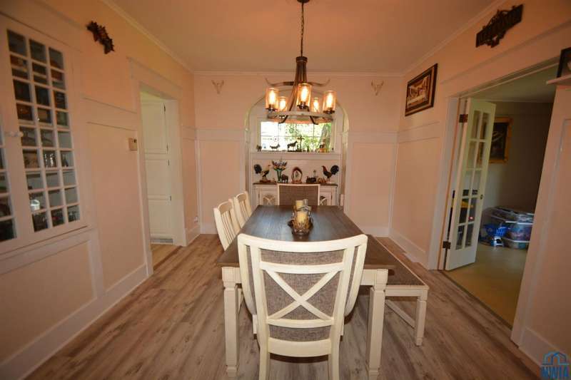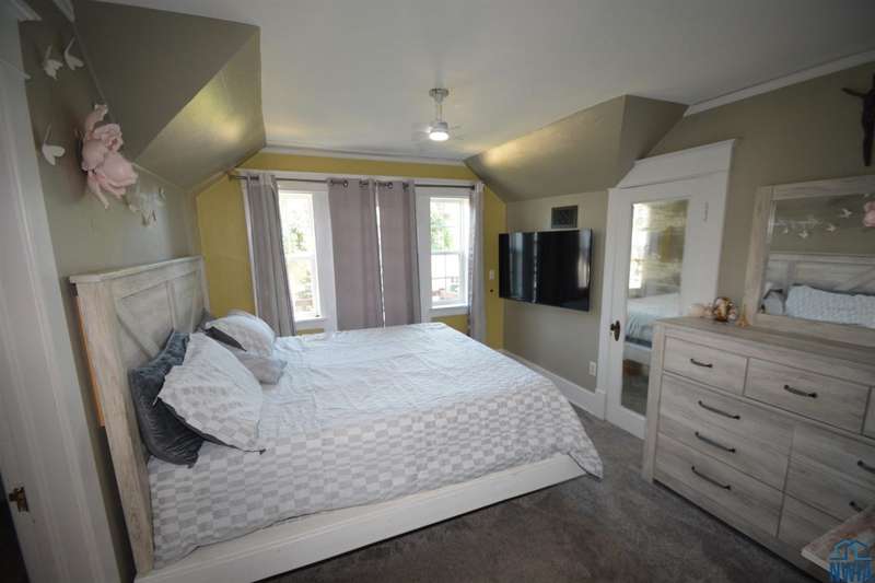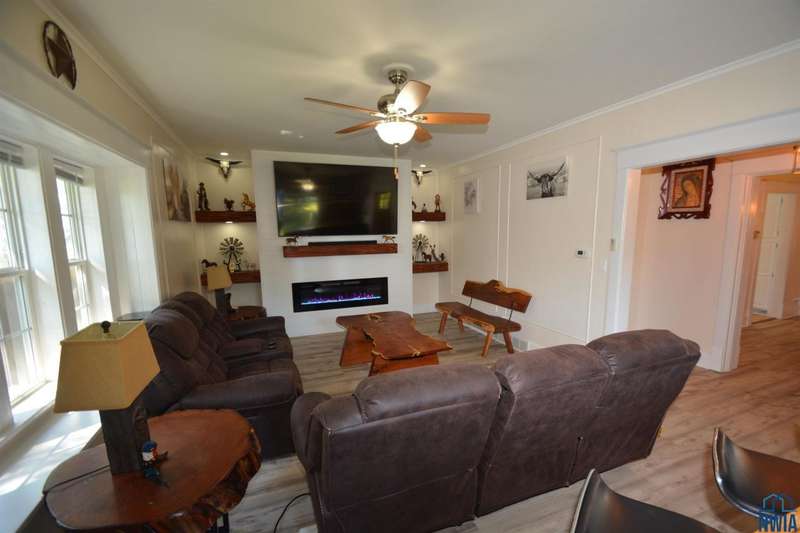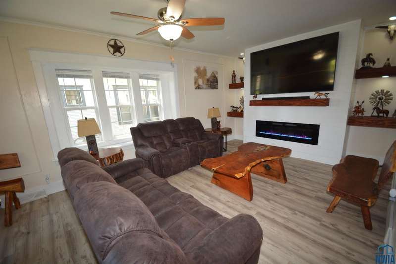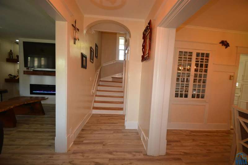 This lovely Northside home is full of charm, character, and modern updates! The spacious living room features newer flooring, built-in shelving, and an electric fireplace, creating a warm, inviting atmosphere filled with natural light. The open flow continues into the dining room, highlighted by a curved hutch area and French doors leading to a playroom / den. The updated kitchen blends style and function, making meal prep a pleasure. Upstairs, youll find three bedrooms plus large walk-in closets. The updated 3/4 bathroom brings modern comfort, while the lower level adds even more living space with a new bath and a den with closet plus large finished laundry area with laundry sink. Large stamped concrete patio with covered areas in the privacy fenced back lawn. Siding, gutters and windows 2023. Situated close to shopping, restaurants, and Grandview Park, this home offers the perfect balance of everyday convenience and timeless appeal.