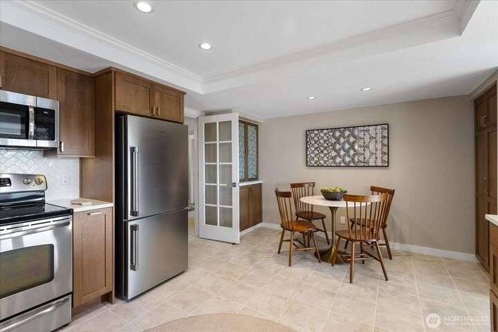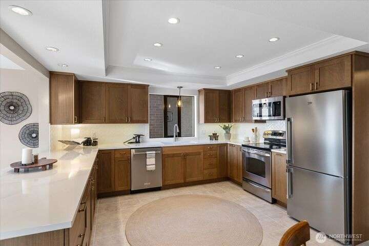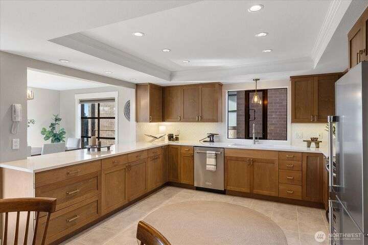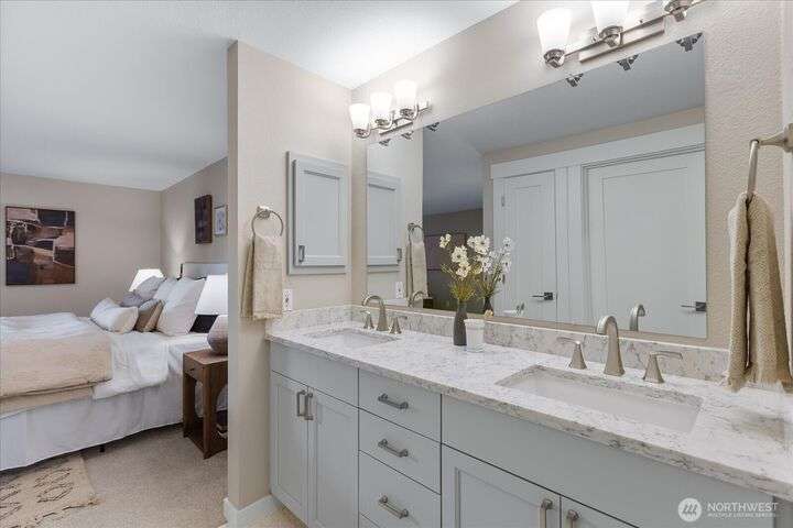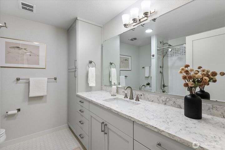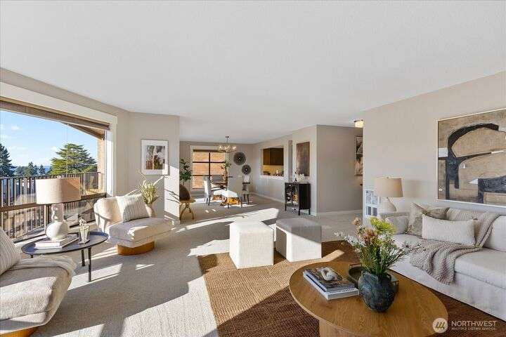Panoramic VIEWS of Sound and Mountains from this SPACIOUS and exquisitely remodeled residence at The Executive! This condo lives like a home...every room is generous and every surface has been 'touched' with quality upgrades. New doors & trim, newer flooring throughout; newer cabinetry, lighting, newer counter surfaces, newer appliances - absolutely 'turn-key'. Add to this a lovely re-tiled VIEW deck for ferry-watching and gorgeous sunsets, tandem parking for two cars and a large storage unit at parking level as well as one on the deck - what a package! Downtown Edmonds with all the eateries, Saturday Market, Edmonds Community for the Arts, the Waterfront Center...and the beach...So CLOSE by! You can leave your car parked at your new home!