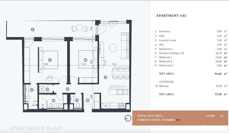 The main resort building houses 179 apartments of various types. All apartments feature private terraces with views of the sea or Mediterranean greenery, while the interiors are designed in a contemporary style with an emphasis on elegance and natural materials. Each unit is equipped with a modern kitchen, bathrooms with underfloor heating, washer-dryer, smart TV system, safe, and high-speed internet. Great attention has been paid to details that provide the comfort of a home and the luxury of a hotel at the same time, from premium materials to personalized services such as baby equipment or pet-friendly amenities upon request.