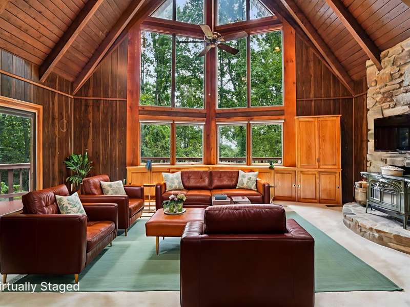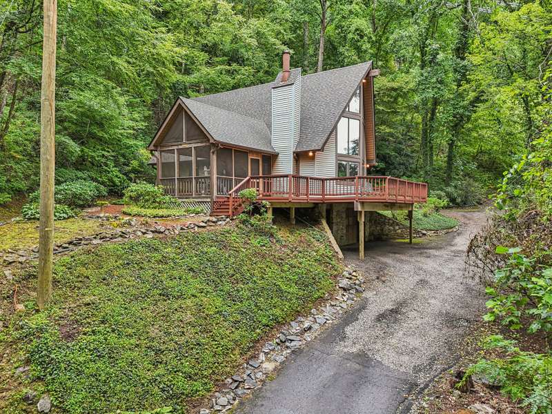 MULTIPLE OFFERS-PLEASE SUBMIT ALL OFFERS BY SUNDAY, SEPTEMBER 14, 2025, 5PM Blue Ridge Haven ? Nestled on 2+ acres with some year-round and winter long-range mountain views, this charming cabin blends privacy with convenience?just 10 minutes from Downtown Asheville and minutes to Fairview. With no HOA, no restrictions, and short-term rental potential, the possibilities are endless. Inside, beautiful woodwork and thoughtful craftsmanship create a warm, inviting atmosphere. Energy-efficient Pella windows and a Vermont Castings stove enhance comfort. Recent updates include a brand-new roof with insulating panels (2024) and freshly painted decking. Future updates include new carpet on the first floor, stairs and vinyl in the primary bathroom. This project will be completed prior to closing. Whether a full-time residence, vacation escape, or income-producing retreat, this serene wooded haven embodies mountain living at its finest.