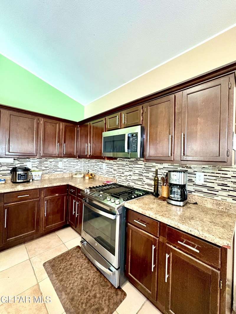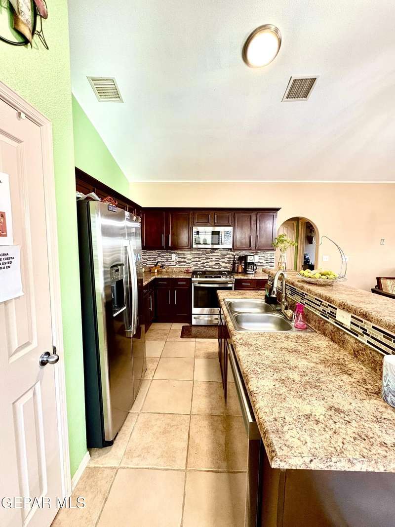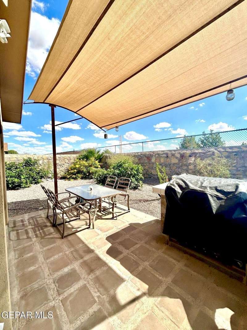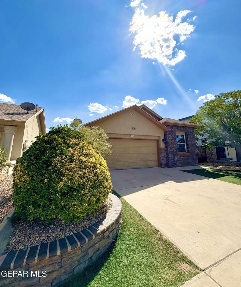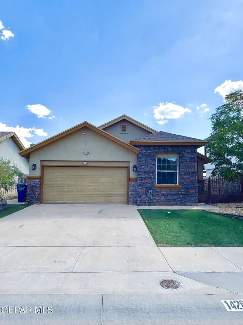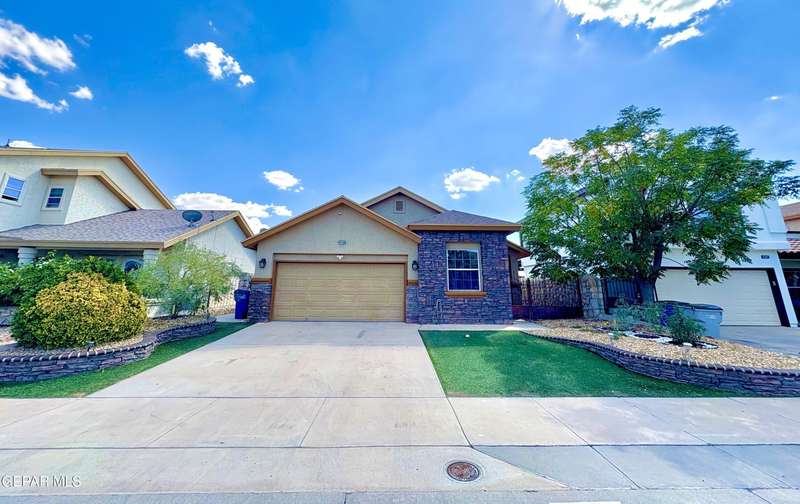ONLY 5 MINS FROM PEBBLE HILLS HIGH! Beautifully maintained & landscaped offers a functional open-concept design, where the kitchen, dining, and living areas connect seamlessly. The bedrooms are thoughtfully set to the side, providing both comfort and privacy. Especially NO CARPET! Interior Highlights: ceramic tile and laminated flooring throughout (with only one bedroom featuring carpet), paired with a modern and welcoming layout. Exterior Highlights: a fully landscaped front yard with elegant stone veneer accents and custom iron gates. The backyard is designed for gatherings, complete with cement walkways, turf, decorative rock, a built-in grill, covered patio, and mature fruit trees. Combining style, comfort, and curb appeal, this home is ready to welcome its next owner. Schedule your showing today!