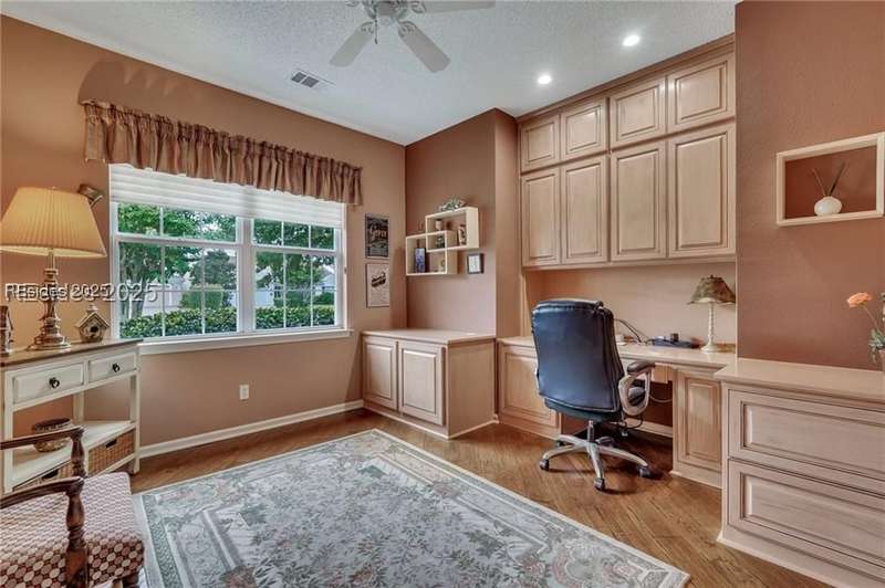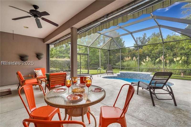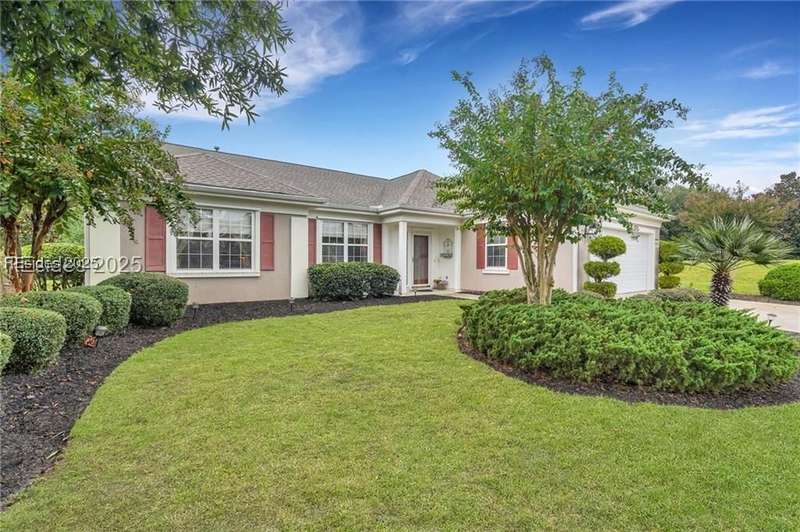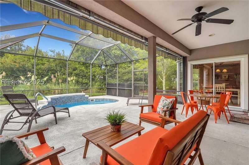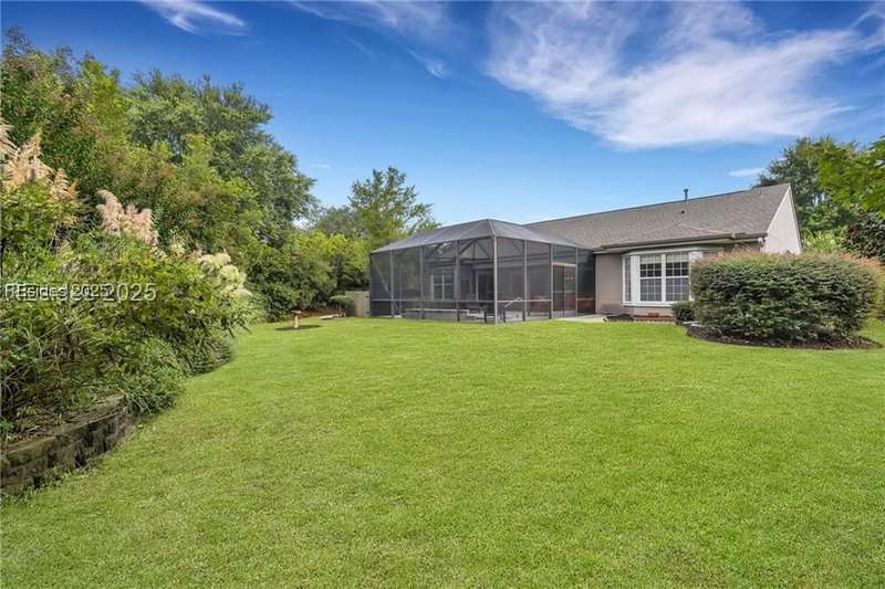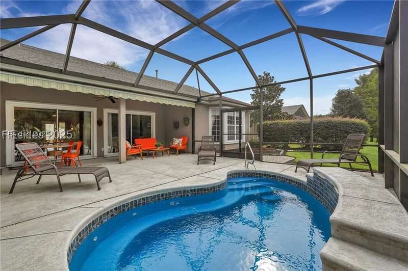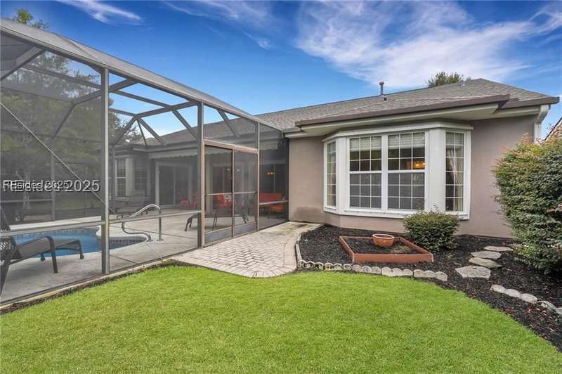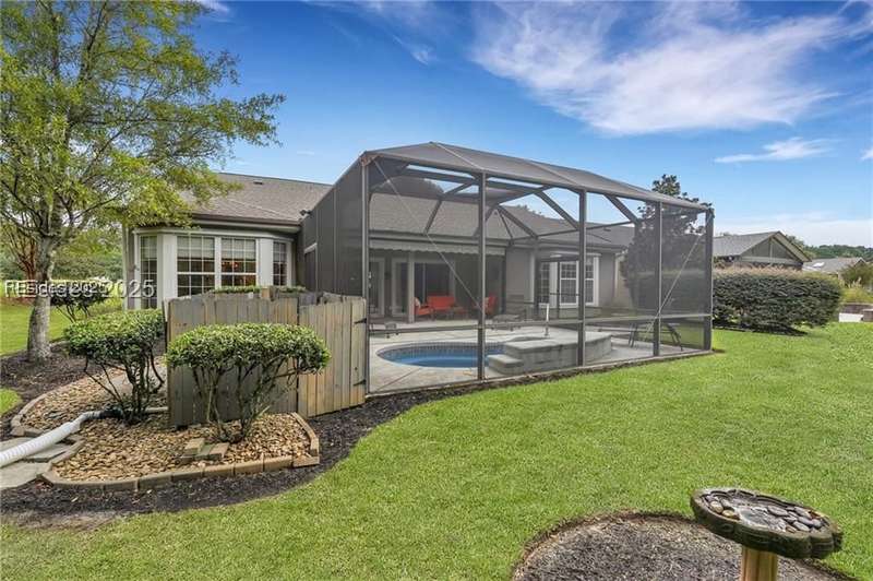 Who's looking for a POOL in paradise? Located in SUN CITY HILTON HEAD, this popular Dogwood Model sits on a peaceful cul-de-sac! The open-concept layout offers 2 BD/2 BA, and a versatile office/flex room. The eat-in kitchen w/ SS appliances & eat at bar flow seamlessly into the spacious living room, making it great for entertaining. Providing lots of storage, built in space and closets. Enjoy the outdoor space with a covered area, open patio, & a serene waterfall feature on the pool for relaxing sunset evenings. The home offers scenic landscape & lagoon views. **********Sun City Hilton Head in Bluffton, SC, is a premier 55+ community spanning over 5,000 acres, offering an unmatched resort-style lifestyle. Residents enjoy 54 holes of golf across three scenic courses, six pools (including indoor lap and leisure pools), and three fully equipped fitness centers with classes and studios. The sports park offers tennis, pickleball, bocce, softball, volleyball, croquet, and more. Social and creative outlets abound with a ballroom, 16,000 sq ft performing arts theater, arts and crafts studios, woodworking shop, billiards, card rooms, and a library. Outdoor enthusiasts appreciate the Lake Somerset and Riverbend Docks, fishing, miles of walking and nature trails, community gardens, and three dog parks. There are over 150 clubs covering everything from arts and music to technology and lifelong learning. Additional amenities include on-site restaurants, RV and boat storage, and a secure, gated environment with convenient access to Hilton Head beaches, Historic Savannah and Charleston along with local shopping, dining, and healthcare. Sun City is also expanding with a new multimillion-dollar resort style amenity center coming soon!