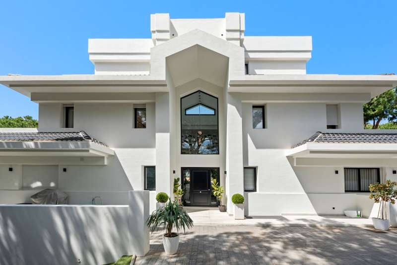 This stunning 6-bedroom villa is for sale in a peaceful residential area of Marbella. Offering a luxurious and spacious living experience, the property spans 987m² on a generous 1,871m² plot. The design maximizes natural light and features an open-plan layout. On the main floor, an elegant entrance hall leads to a living room and a fully equipped kitchen with a dining area. There is also a guest suite on this floor, which could serve as an alternative master suite, as well as a guest toilet. Direct access to the terraces and garden provides seamless indoor-outdoor living. This floor also includes a guest bedroom with an en-suite bathroom and a staff apartment with a living room, bedroom, and bathroom. Additional amenities include a cinema room, wine cellar, leisure/pool room, gym, office, laundry room, and a garage that can accommodate six cars. All rooms benefit from abundant natural light, enhancing the open-plan feel of the property. The first floor houses the master bedroom wi