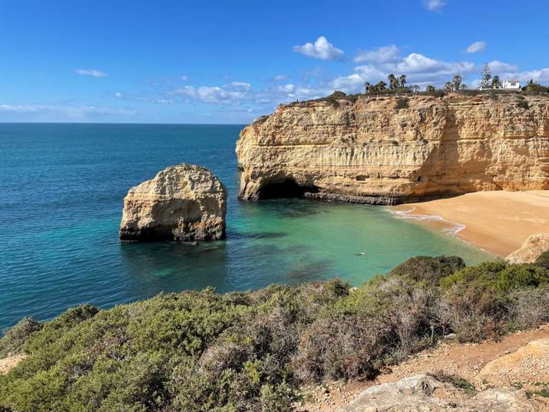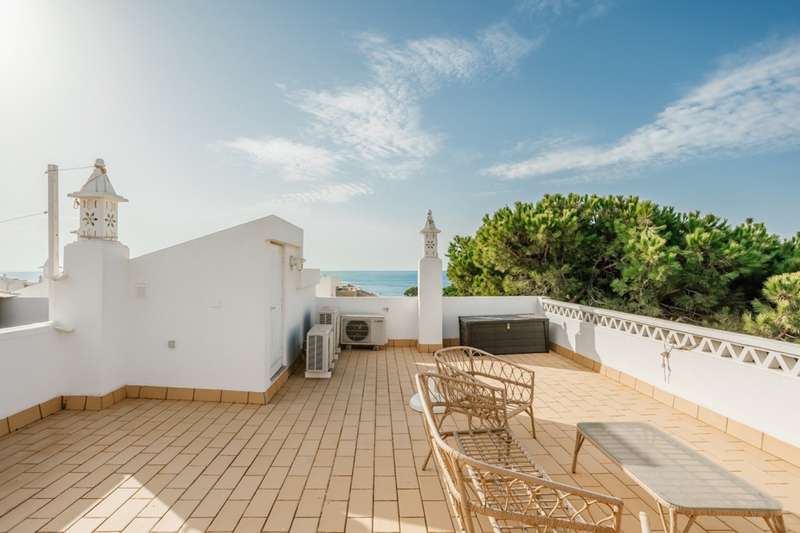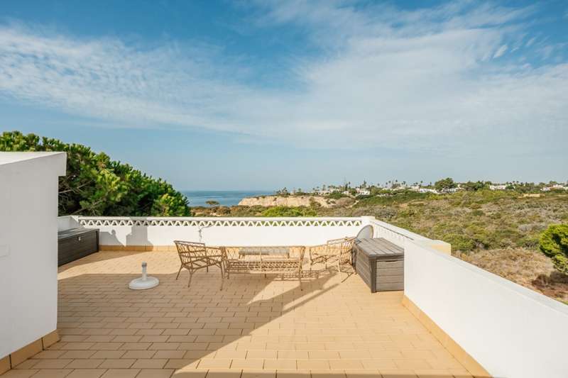Fantastic 2-bedroom townhouse in Terraços de Benagil, a short distance from Benagil Beach in Lagoa, Algarve. On the first floor is the social area, with a living room and dining room, full of natural light, adjacent is the compact but functional and fully equipped kitchen, a bathroom equipped with a shower and two storage cupboards. Up the stairs are the two good-sized bedrooms with built-in closets, one of which has an en-suite bathroom, equipped with a bathtub and double sinks, and the other has a private balcony. There is also an additional bathroom. The villa has an upper floor, an extraordinary rooftop with unobstructed sea views and space for al fresco dining. The villa also has a covered patio at the entrance for two cars. In an excellent location, one of the quietest areas of Benagil, with several restaurants, activities, nature trails, just a few minutes from Praia do Carvalho, as well as easy access to several other beaches in the surrounding area and renowned golf courses. Faro International Airport is 45 minutes away. An excellent choice for a vacation home, or for renting out. CHARACTERISTICS: Plot Area: 118 m2 | 1 274 sq ft Area: 105 m2 | 1 130 sq ft Useful area: 83 m2 | 889 sq ft Deployment Area: 48 m2 | 519 sq ft Bedrooms: 2 Bathrooms: 3 Energy efficiency: E FEATURES: 2 bedrooms Equipped kitchen Balcony Rooftop Parking space