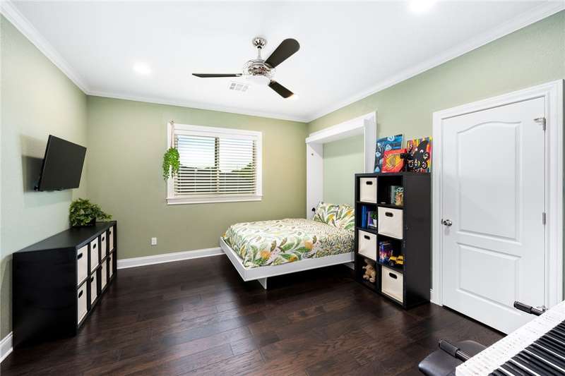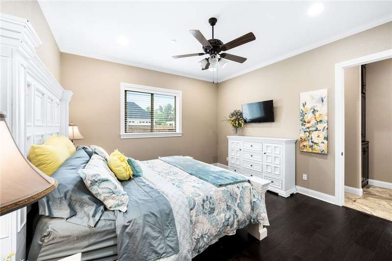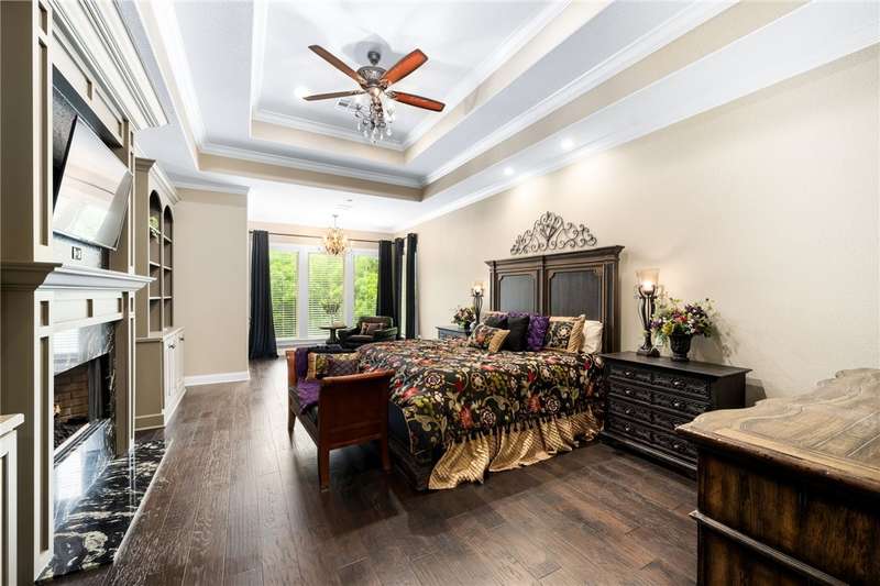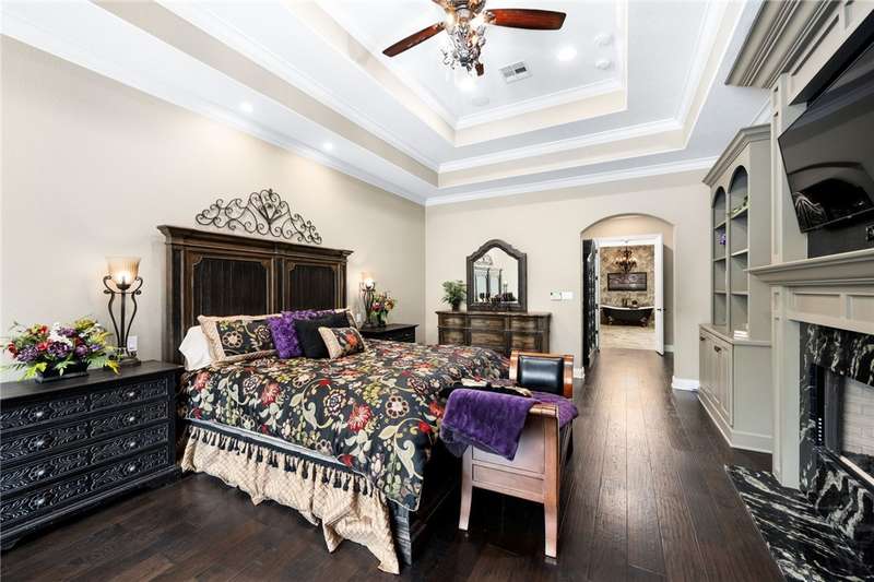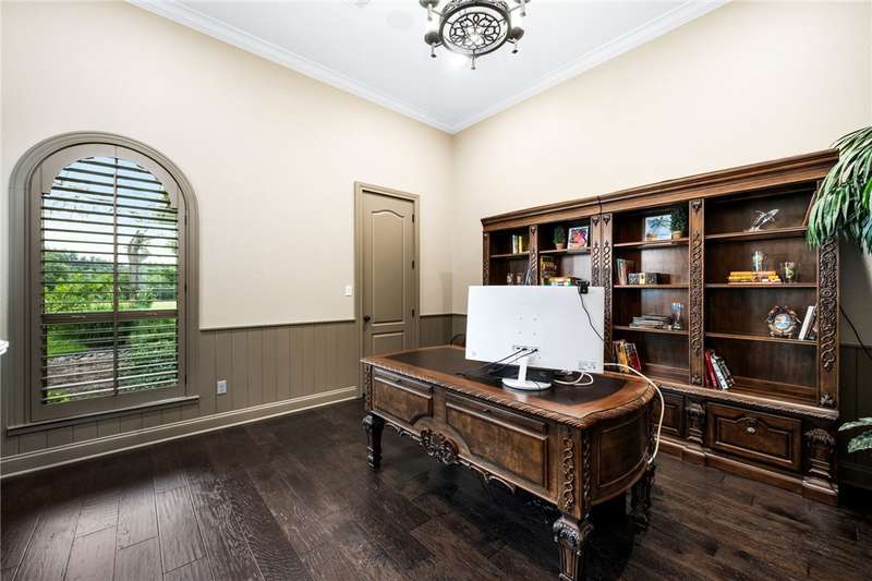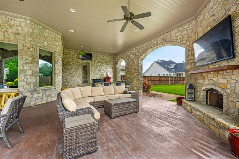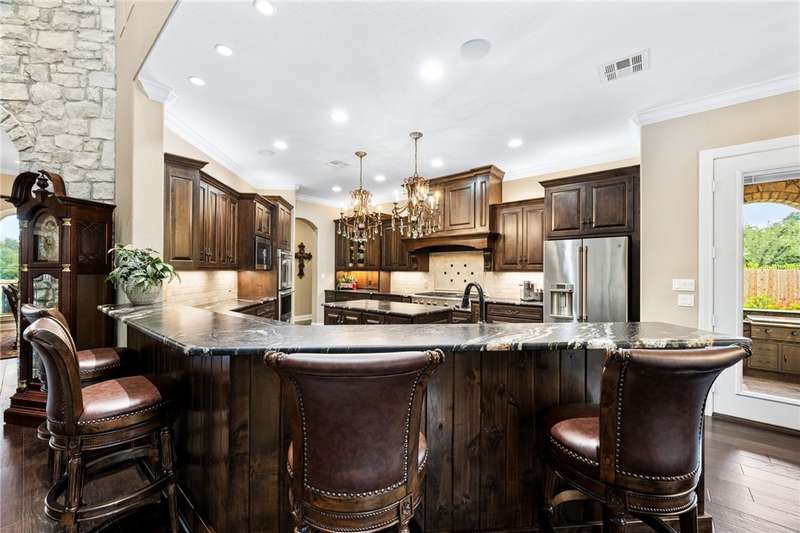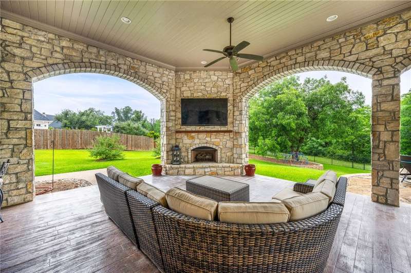 Welcome to this magnificent custom built Alford home in desirable Badger Ranch on 1.4 acres. This impressive home invites you in through its gorgeous stoned arch entry and offers 4 bedrooms and 4.5 bathrooms providing ample space for your family and guests. The downstairs spacious living area features luxurious hardwood floors, gas log fireplace, built-in lighted custom cabinets, motorized chandelier, wall of windows with floor to ceiling custom drapery and crown molding. The gourmet kitchen is a chef's dream with Cafe stainless appliances, ample custom cabinetry, lighted Butlers pantry, lavish chandelier overhanging the oversized island, walk in pantry, and regal leathered granite counters. Formal dining has arched cased windows with custom window treatments, hardwood flooring and wet bar. The primary bedroom on the first floor features a marble gas log fireplace, custom built-in cabinetry, double tray ceiling, hardwood floors, a cozy sitting area with wonderful view of backyard and accessibility to patio. The luxurious primary bathroom boasts five chandeliers, dual vanities with top grade granite counters, claw foot tub, mounted television, a large walk-through ceiling to floor tiled shower with multiple heads and two walk-in closets. The downstairs office features plantation shutters and hardwood flooring and could serve as an additional downstairs bedroom. Another bonus on the first floor is a hobby/craft room. The downstairs guest bedroom offers easy access to a full guest bathroom with tile flooring, which also has access to the covered patio and pool. The laundry room includes a sink and ample storage and off the garage the built-in landing bench and bookshelves with additional storage add convenience and organization. The home also includes an elevator, providing easy access to the upper level. Upstairs you'll find a second living area with wonderful built-ins, mounted television and French doors accessing the balcony. The balcony overlooks the sleek designed luxury pool and playground area. Upstairs also features two gaming areas, a guest bathroom and two additional bedrooms. One bedroom features a loft while the other has a Murphy bed. Outside, an oversized covered patio with concrete wood look stamped floors, bead board ceiling, recessed lighting, ceiling fans, a gas log fireplace and an outdoor kitchen provide the perfect setting for outdoor entertaining. The outdoor kitchen is equipped with a Traeger grill, woodfire pizza oven, Coyote grill, refrigerator and eat at granite bar. The private oasis continues with a sparkling pool featuring an attached hot tub, waterfall feature and gas fire pit all surrounded by a decorative iron fence. A tree-covered playground area and a privacy fenced backyard ensure fun and privacy for family and guests. Additional features include gutters, twelve camera security system , central vacuum system and a three-car side entry garage with room for boat parking. Experience the best of both worlds with luxurious indoor amenities and a serene outdoor setting in this exceptional property at Badger Ranch Subdivision! $1,800,000.