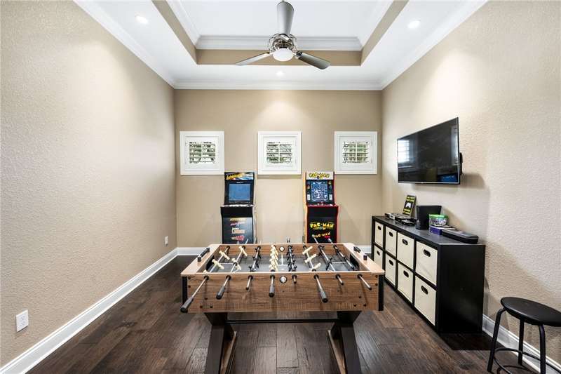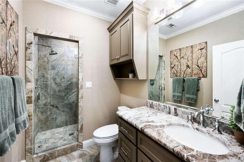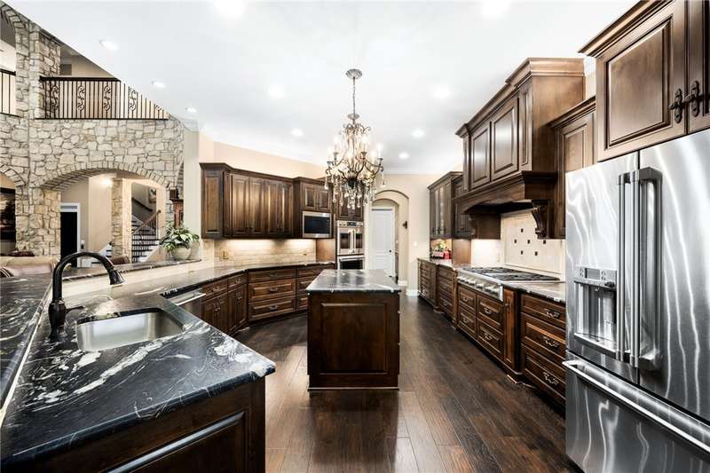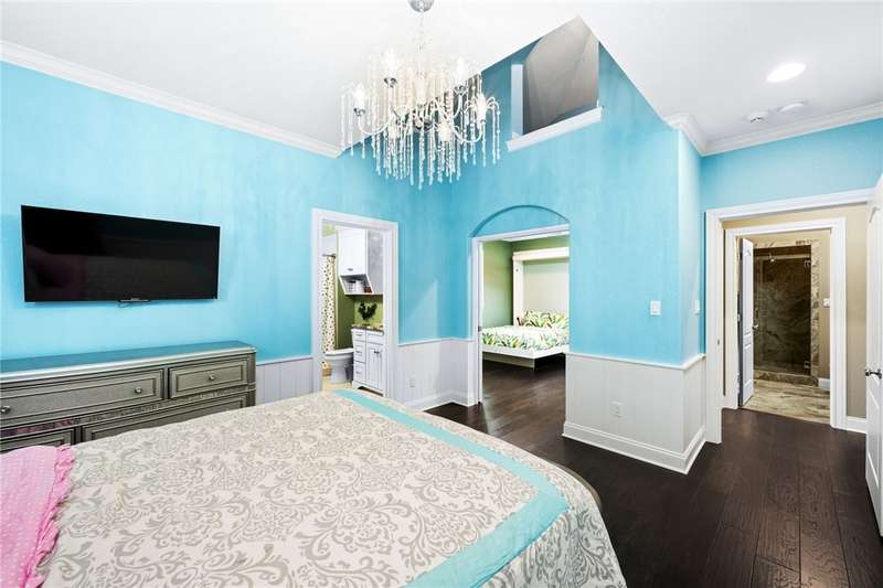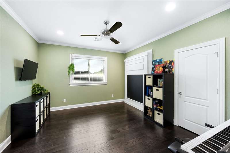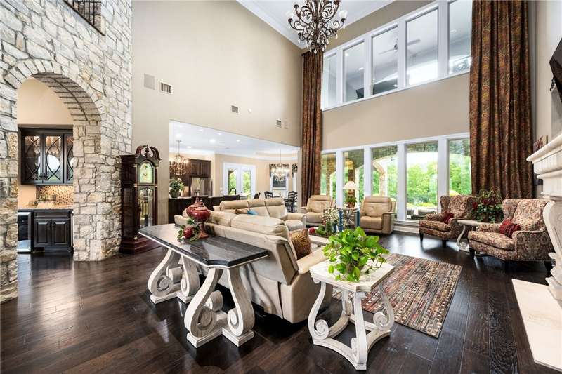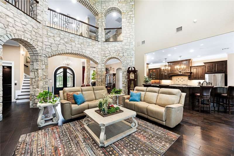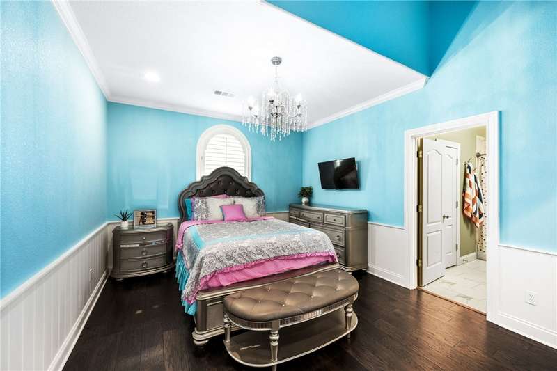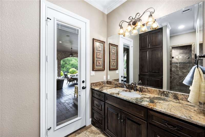 Welcome to this magnificent custom built Alford home in desirable Badger Ranch on 1.4 acres. This impressive home invites you in through its gorgeous stoned arch entry and offers 4 bedrooms and 4.5 bathrooms providing ample space for your family and guests. The downstairs spacious living area features luxurious hardwood floors, gas log fireplace, built-in lighted custom cabinets, motorized chandelier, wall of windows with floor to ceiling custom drapery and crown molding. The gourmet kitchen is a chef's dream with Cafe stainless appliances, ample custom cabinetry, lighted Butlers pantry, lavish chandelier overhanging the oversized island, walk in pantry, and regal leathered granite counters. Formal dining has arched cased windows with custom window treatments, hardwood flooring and wet bar. The primary bedroom on the first floor features a marble gas log fireplace, custom built-in cabinetry, double tray ceiling, hardwood floors, a cozy sitting area with wonderful view of backyard and accessibility to patio. The luxurious primary bathroom boasts five chandeliers, dual vanities with top grade granite counters, claw foot tub, mounted television, a large walk-through ceiling to floor tiled shower with multiple heads and two walk-in closets. The downstairs office features plantation shutters and hardwood flooring and could serve as an additional downstairs bedroom. Another bonus on the first floor is a hobby/craft room. The downstairs guest bedroom offers easy access to a full guest bathroom with tile flooring, which also has access to the covered patio and pool. The laundry room includes a sink and ample storage and off the garage the built-in landing bench and bookshelves with additional storage add convenience and organization. The home also includes an elevator, providing easy access to the upper level. Upstairs you'll find a second living area with wonderful built-ins, mounted television and French doors accessing the balcony. The balcony overlooks the sleek designed luxury pool and playground area. Upstairs also features two gaming areas, a guest bathroom and two additional bedrooms. One bedroom features a loft while the other has a Murphy bed. Outside, an oversized covered patio with concrete wood look stamped floors, bead board ceiling, recessed lighting, ceiling fans, a gas log fireplace and an outdoor kitchen provide the perfect setting for outdoor entertaining. The outdoor kitchen is equipped with a Traeger grill, woodfire pizza oven, Coyote grill, refrigerator and eat at granite bar. The private oasis continues with a sparkling pool featuring an attached hot tub, waterfall feature and gas fire pit all surrounded by a decorative iron fence. A tree-covered playground area and a privacy fenced backyard ensure fun and privacy for family and guests. Additional features include gutters, twelve camera security system , central vacuum system and a three-car side entry garage with room for boat parking. Experience the best of both worlds with luxurious indoor amenities and a serene outdoor setting in this exceptional property at Badger Ranch Subdivision! $1,800,000.