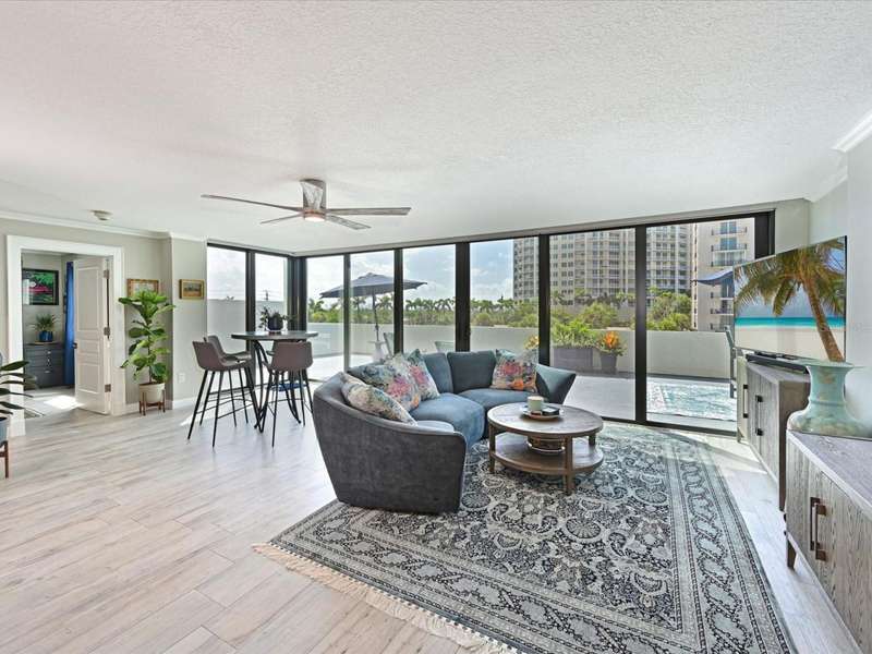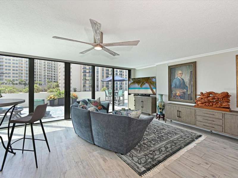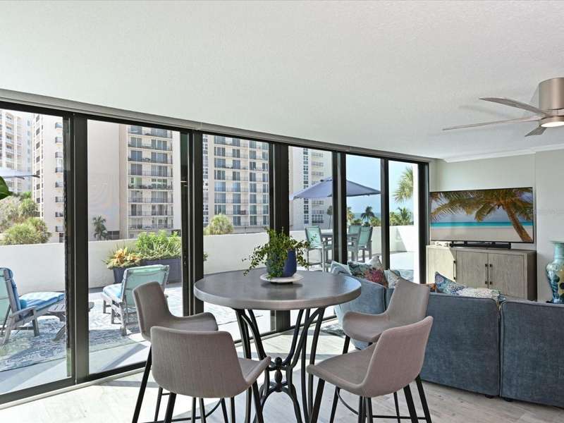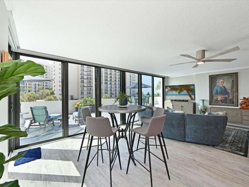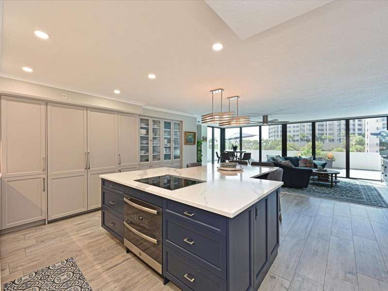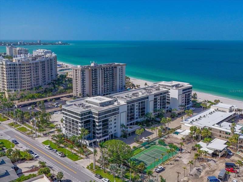 BEAT THE SNOWBIRDS. GREAT LOCATION. The is the beachfront home you have been waiting for!Step into this fabulous home and you are immediately drawn to the wonderful open living space and huge 1300+ square foot balcony. The open living and dining space invites you in to embrace the beach lifestyle. With stacking hurricane rated sliding doors, access to this huge outdoor area puts creating memories, entertaining family and friends or just relaxing to the views and breezes of Lido Beach just steps away. This condo unit was completely renovated 2020-2021; taken down to the studs. No expense was spared and new drywall, flooring, plumbing, and electrical are in place. The split floorplan was thoughtfully reimagined and designed with high end finishes and fixtures providing beauty and functionality for full time living. The chef's kitchen boasts custom cabinetry, gourmet appliances, including Thermador refrigerator and freezer and storage galore! The large center island offers space for casual meals and gatherings. The combined living/ dining space offers access to the balcony with views of Lido Beach. The primary bedroom includes and ensuite bathroom with custom dual vanities, and large walk-in shower. It boasts a large walk-in closet with custom storage solutions. The second ensuite bedroom is situated on the opposite end of the unit, providing privacy for guests. Its custom built-in Murphy bed and wall shelving is a great bedroom retreat or a private workspace. It, too, has an ensuite bath with custom cabinets, and a tub/shower combination. A walk -in closet offers premium storage. More views- The third bedroom offers floor to ceiling windows and is currently used as an office space. A third full bath with shower is centrally located for guest use.You don't need to step out to do laundry; a laundry room with stacked washer and dryer and multiple storage solutions is in the home. There in onsite management for this complex and the unit includes one assigned 2nd fl garage parking space and a lock storage room. The complex has a beachfront pool and spa surrounded by lounges and table and chairs, a barbeque area, a social room and workout room.Lido Surf and Sands is situated on Lido Beach nestled between the iconic Ritz Carlton Lido Beach Resort and the much-anticipated Rosewood complex. This location of the Lido Beach area encompasses a quieter lifestyle with no public parking offered at this complex. Step outside your door and walk down the silky white sands of Lido Beach and view the sparkling turquoise waters of the Gulf of Mexico. Spot sea birds and the occasional dolphin. Nearby Ted Sperling Park and Nature Trail offers an area to kayak and see beautiful Sarasota Bay. Take a short walk down Benjamin Franklin Dr to dining spots including a fun beachside tiki bar. Stroll along St. Armand's Circle for many options for shopping, and casual and fine dining. The Sarasota Yacht Club is just around the corner. Private and public golf courses are short drives away. Downtown Sarasota is just 10 minutes away, offering shopping, dining, Sarasota Opera House, Van Wezel and many other entertainment venues. Sarasota International Airport is 25 minutes away;Tampa International Airport just 1 1/2 hrs. away, with major airlines offering daily flight to US destinations and connections worldwide. At the end of the day, know that you will be returning back to this beautiful home and your own piece of PARADISE ON THE BEACH!!