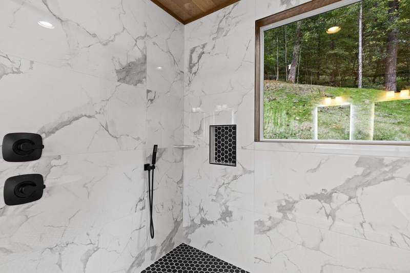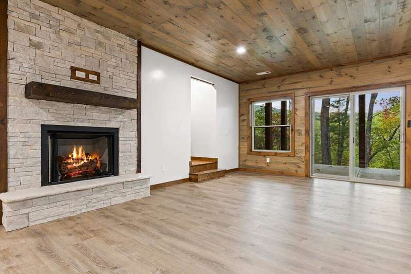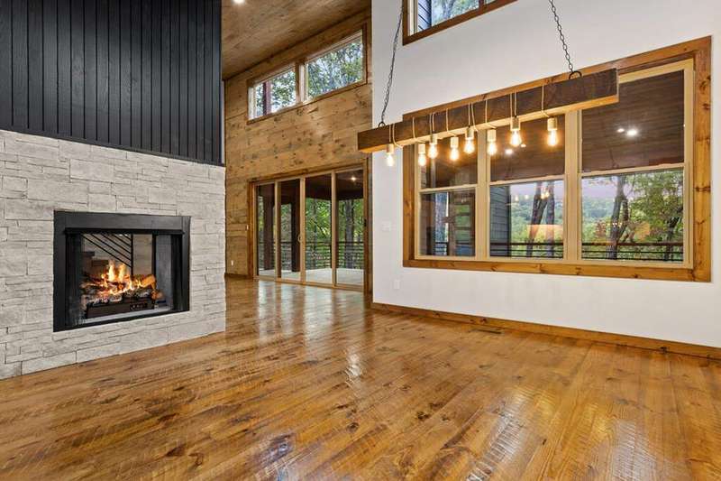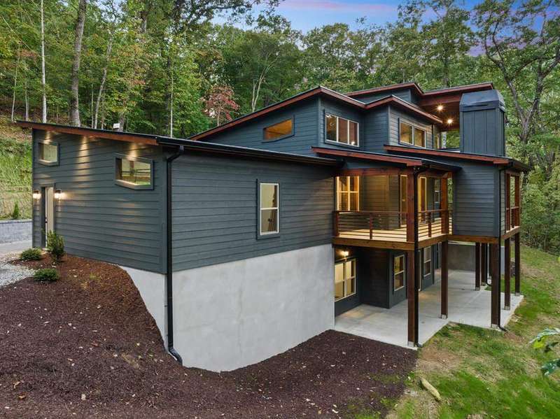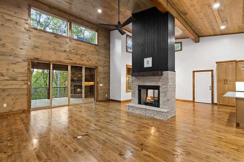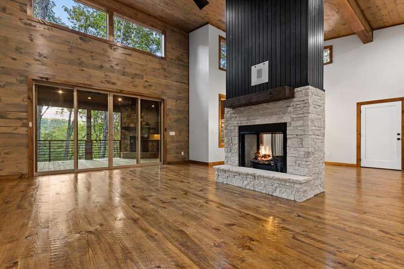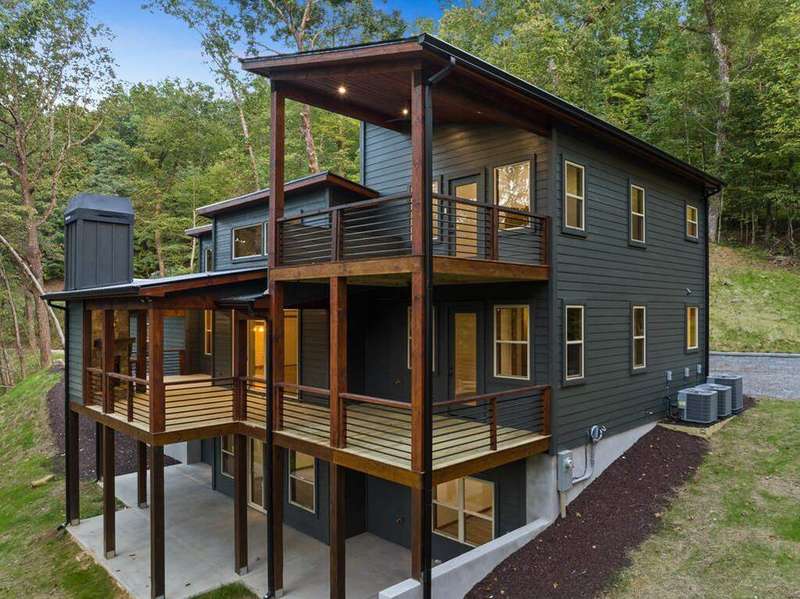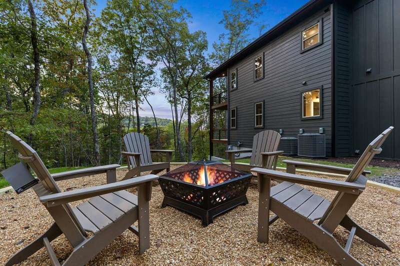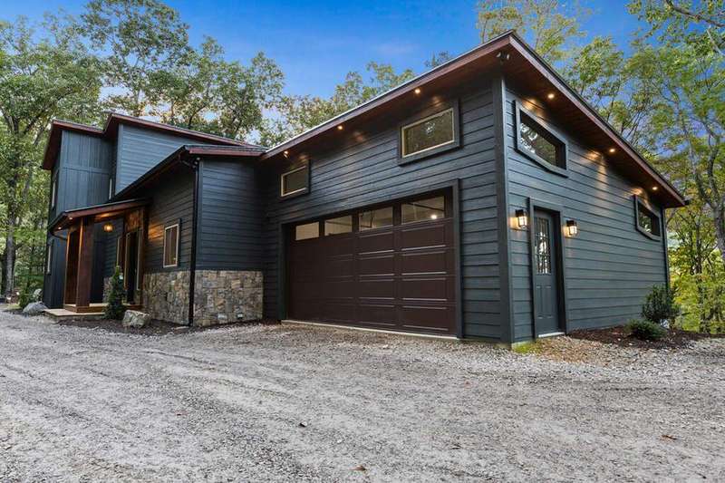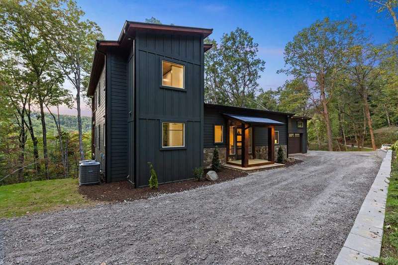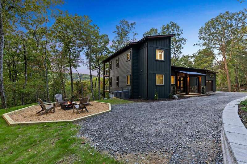 Stunning Mountain Modern with Year-Round Views! Thoughtfully designed new construction offering four bedrooms, four and a half baths, and a rare attached two-car garage, all tucked behind a long private driveway for added privacy. Open-concept layout showcases vaulted ceilings, dramatic double-sided fireplace, and expansive sliding glass doors that frame sweeping mountain vistas. Primary on main and The spa-like primary ensuite and main-level laundry provide everyday ease and comfort. The terrace level is perfect for entertaining, featuring an oversized great room with a stylish wet bar and a second laundry room for added convenience. Outdoor living is just as impressive, with a spacious firepit area, private lot with plenty of usable land, and panoramic views that make every gathering unforgettable. Ideally located just minutes from downtown Blue Ridge, you'll enjoy boutique shopping, fine dining, hiking trails, and the beauty of Lake Blue Ridge, all with easy year-round access. Whether you're searching for a full-time residence, a weekend getaway, or a potential high-income producing short-term rental, this modern mountain retreat offers the perfect blend of luxury, comfort, and lifestyle.