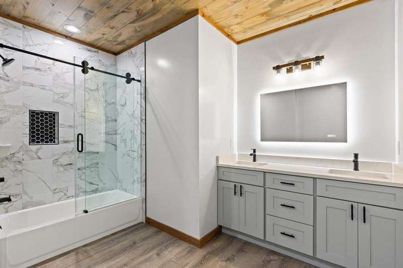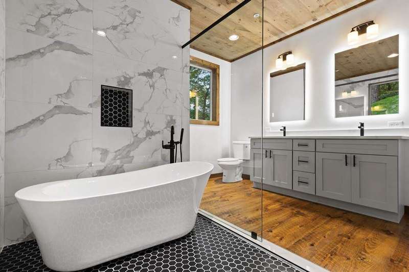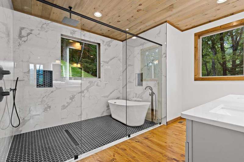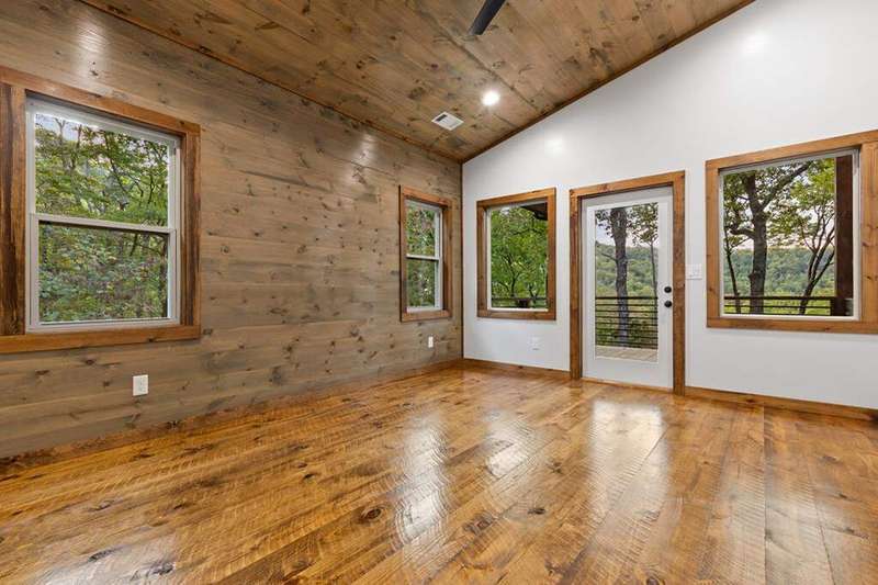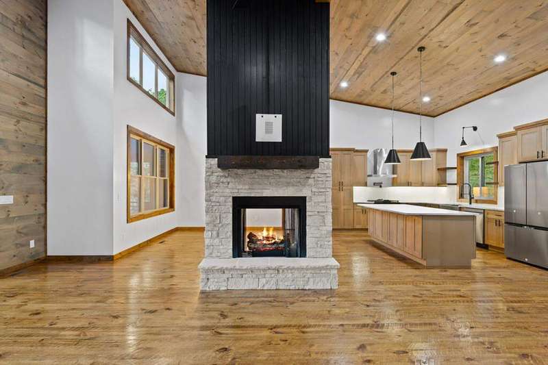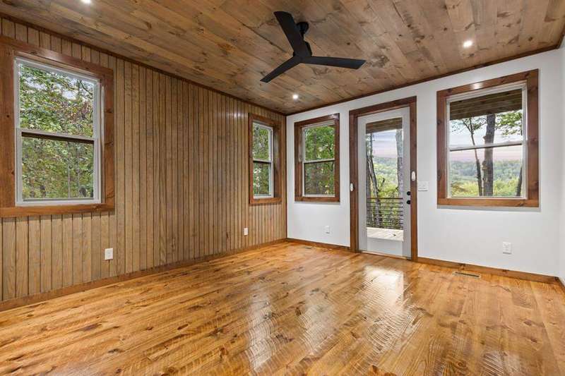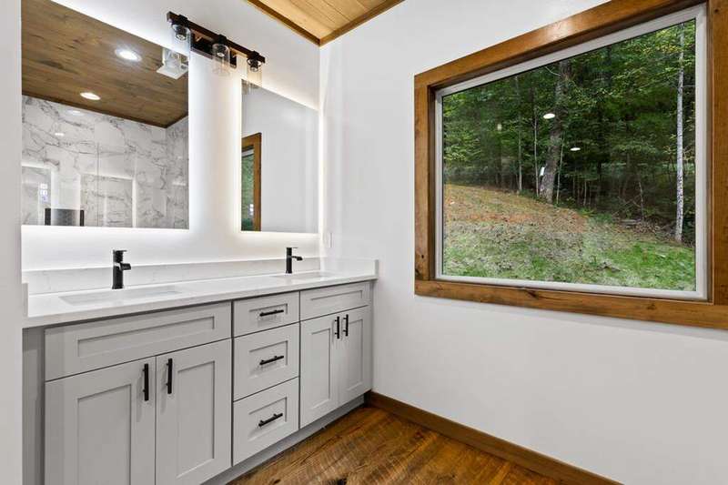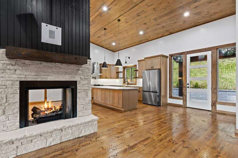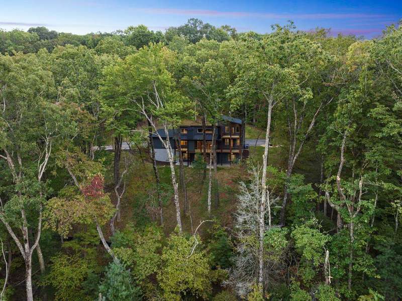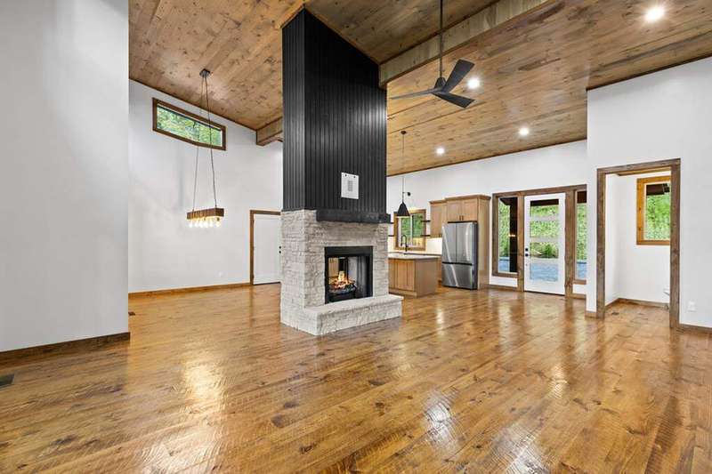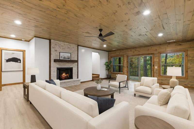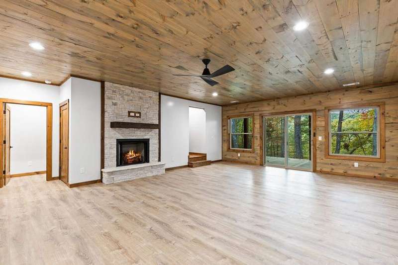 Stunning Mountain Modern with Year-Round Views! Thoughtfully designed new construction offering four bedrooms, four and a half baths, and a rare attached two-car garage, all tucked behind a long private driveway for added privacy. Open-concept layout showcases vaulted ceilings, dramatic double-sided fireplace, and expansive sliding glass doors that frame sweeping mountain vistas. Primary on main and The spa-like primary ensuite and main-level laundry provide everyday ease and comfort. The terrace level is perfect for entertaining, featuring an oversized great room with a stylish wet bar and a second laundry room for added convenience. Outdoor living is just as impressive, with a spacious firepit area, private lot with plenty of usable land, and panoramic views that make every gathering unforgettable. Ideally located just minutes from downtown Blue Ridge, you'll enjoy boutique shopping, fine dining, hiking trails, and the beauty of Lake Blue Ridge, all with easy year-round access. Whether you're searching for a full-time residence, a weekend getaway, or a potential high-income producing short-term rental, this modern mountain retreat offers the perfect blend of luxury, comfort, and lifestyle.