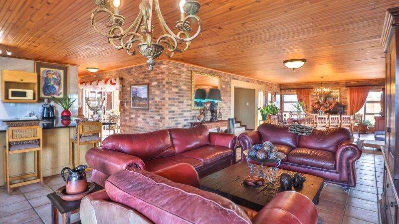 This exceptionally spacious double-storey home is situated at the highest point in Stilbaai, offering breathtaking views of the sea and lagoon. With 5 bedrooms, 4 bathrooms, and an additional 2-bedroom, 1-bathroom flat, this property provides ample space and versatility for comfortable living. Upstairs - A cozy TV room/lounge with sliding doors leading onto a balcony, where you can soak in the stunning sea and lagoon views. The generous main bedroom also has direct access to the balcony, creating a serene retreat with panoramic vistas. Downstairs - An open-plan lounge and dining area, featuring a charming fireplace with a mantelpiece, perfect for cozy gatherings. The spacious kitchen is equipped with built-in cupboards and a separate scullery, offering ample storage and functionality. The enclosed outdoor entertainment area, complete with a built-in gas braai and swimming pool, is ideal for relaxing or hosting family and friends. A large bedroom with sliding doors opening directly onto the pool area, plus a luxurious bathroom featuring a jacuzzi for ultimate relaxation. Separate Flat - The flatlet enjoys beautiful sea views and includes an open-plan lounge, dining area, and kitchen, all with a separate entrance for privacy. This home is an entertainer?ÇÖs dream with its spacious design, stunning views, and exceptional features. Whether you're relaxing by the pool or enjoying a sunset on the balcony, this property offers the perfect blend of luxury and comfort. Contact me today to arrange a viewing!