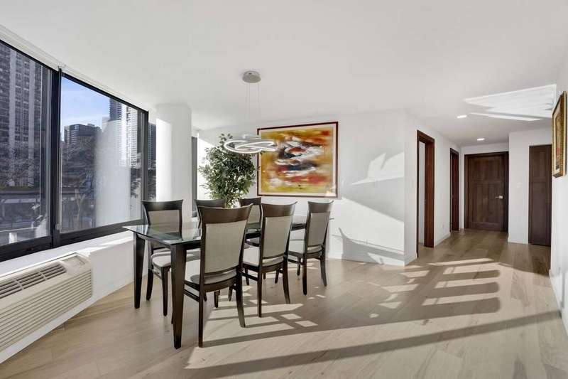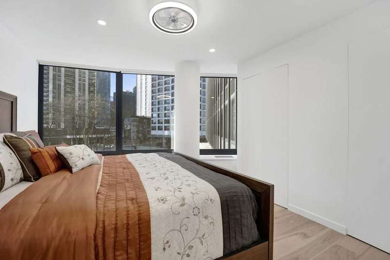 Stunning 2,500-square-foot combined unit boasts three bedrooms and three-and-a-half bathrooms in prestigious Harbor Point! Magnificent curved open floor plan showcases panoramic views of Lake Michigan, Navy Pier, DuSable Harbor, Grant Park, and Chicago's iconic skyline through oversized windows! Natural finished hardwood floors and recessed lighting flow throughout this meticulously designed space. Centrally positioned kitchen features quartz countertops, custom tile backsplash, and stainless steel appliances, complemented by an elegant wet bar with quartz counters, wine fridge, and custom cabinetry with glass panel accent doors. Sophisticated living room highlights an elongated fireplace and accent wall, while flexible den and breakfast nook spaces capture breathtaking views! Formal dining area opens to kitchen, accommodating large-scale entertaining beneath custom lighting fixture. Primary suite impresses with lake views, fireplace, accent wall, expansive walk-in closet, and dual en-suite bathrooms - one featuring a custom glass-enclosed shower/tub combination, the other offering a stand-alone shower, both showcasing custom tilework and vanities. Two additional bedrooms are serviced by a full bathroom with glass-enclosed shower/tub combination and custom tilework, with one bedroom featuring built-in shelving. Convenient half bath and separate laundry room complete this exceptional home. Building amenities include 24-hour door staff, indoor pool, exercise room, sauna, steam room, sundeck, storage, and valet/cleaning services. Steps from Millennium Park, the Art Institute, world-class dining at Gibson's Italia and RPM Seafood, shopping along Michigan Avenue, and easy access to Lake Shore Drive!