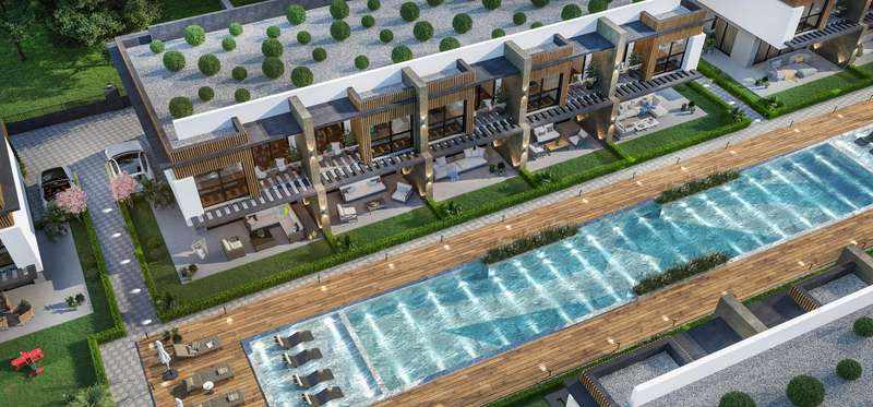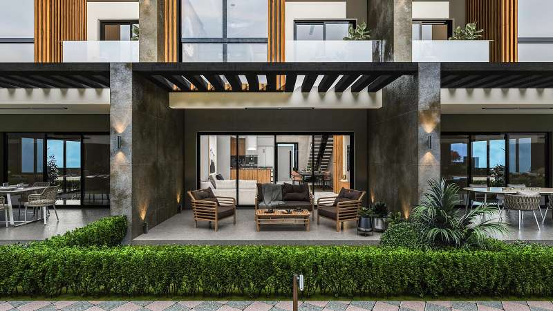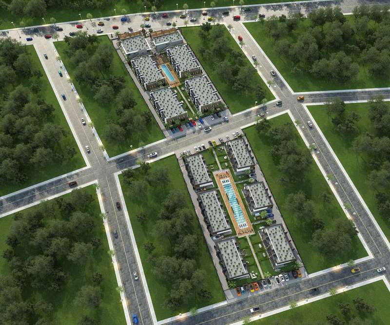 The project with a modern design and horizontal architecture is designed for four-season living. Built on a 5.500 sqm land area, the complex consists of 6 blocks with 2 floors and 24 semi-detached villas with gardens. The complex has a playground, walking paths, 24/7 security and security cameras, quality exterior cladding, outdoor swimming pool, and sunbathing areas.