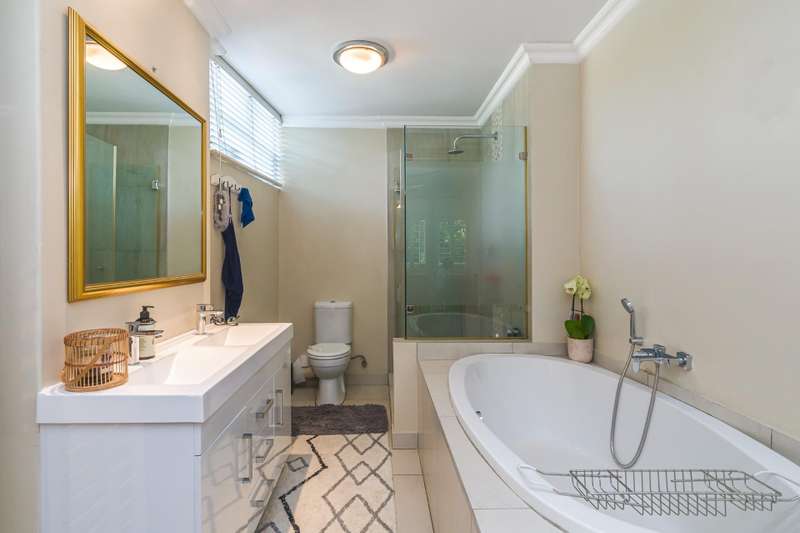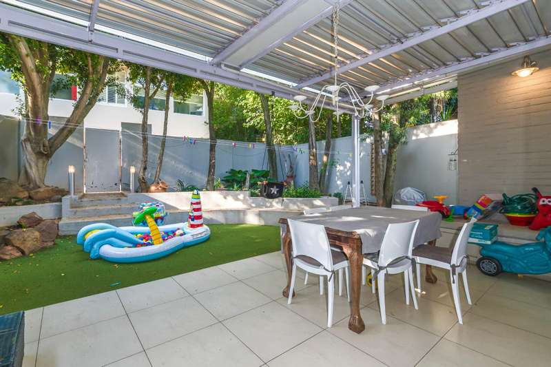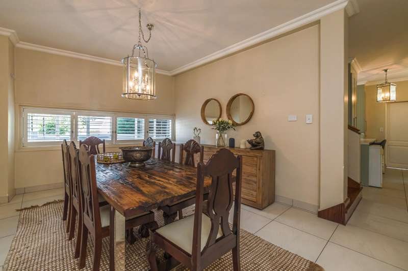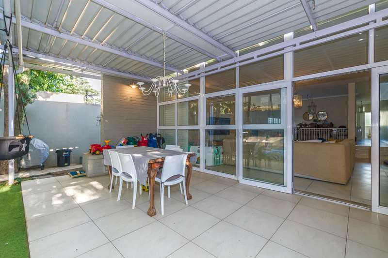 New to market, we bring to you this, beautifully renovated, secure family home within a 24 hour security estate. The home offers 3 sizeable, sun-filled bedrooms, 2 modern bathrooms ( mes ) and separate guest bathroom. Living areas offer an expansive open plan space, comprising family lounge and dining room, with built-in fireplace, and flows out, through Aliminum Stacking doors, onto your covered entertainment area, sizeable private garden and outdoor shower. The space is elevated with plantation-style shutters and refurbished parquet flooring in select areas of the home. The above is serviced by a modern, classic-contemporary, gourmet kitchen area. Additional features include: Back-up power inverter UPS Separate staff accommodation Separate laundry 2 parking bays Separate storage Walking distance to Blubird shopping centre Visitor parking Complex swimming pool Call now to arrange a private viewing.