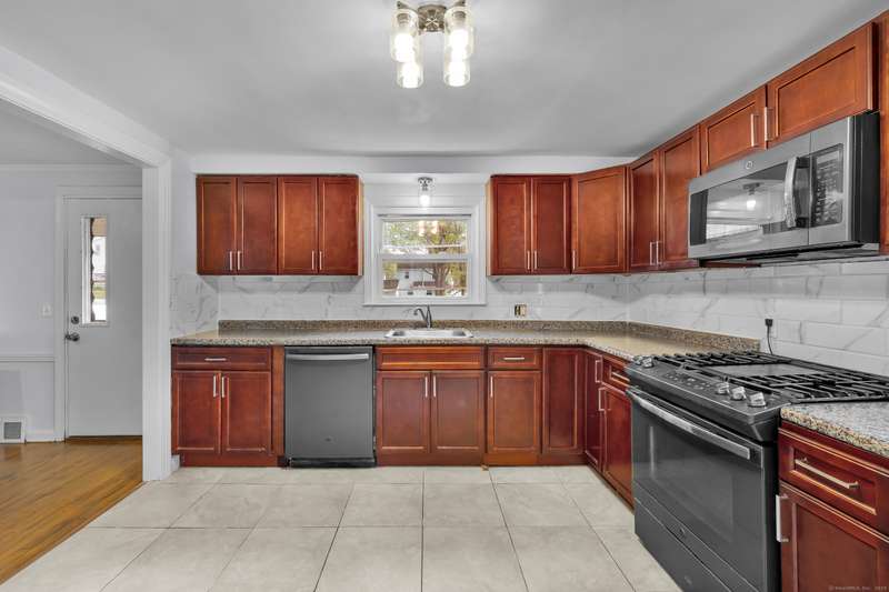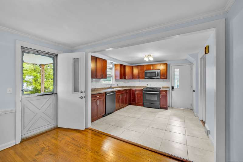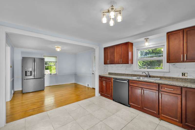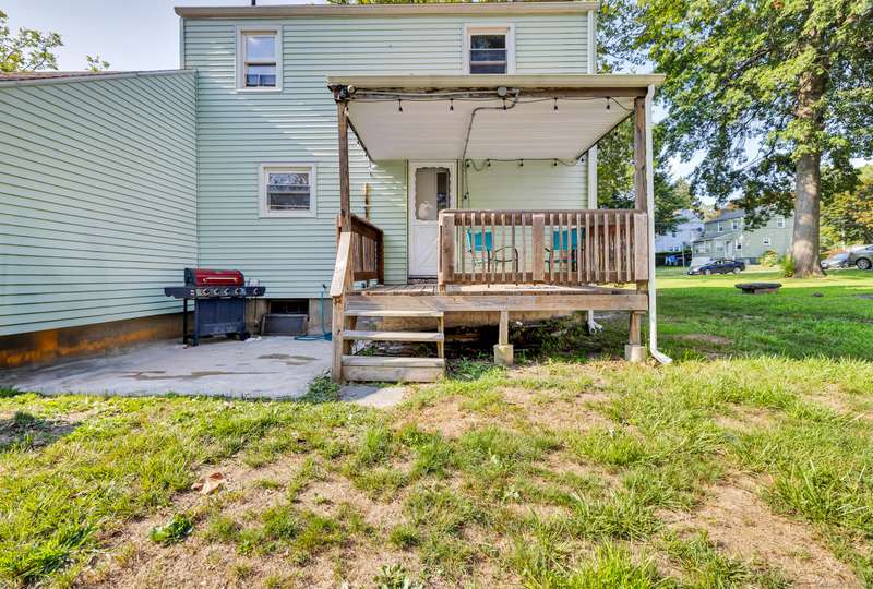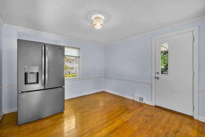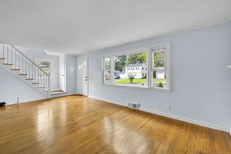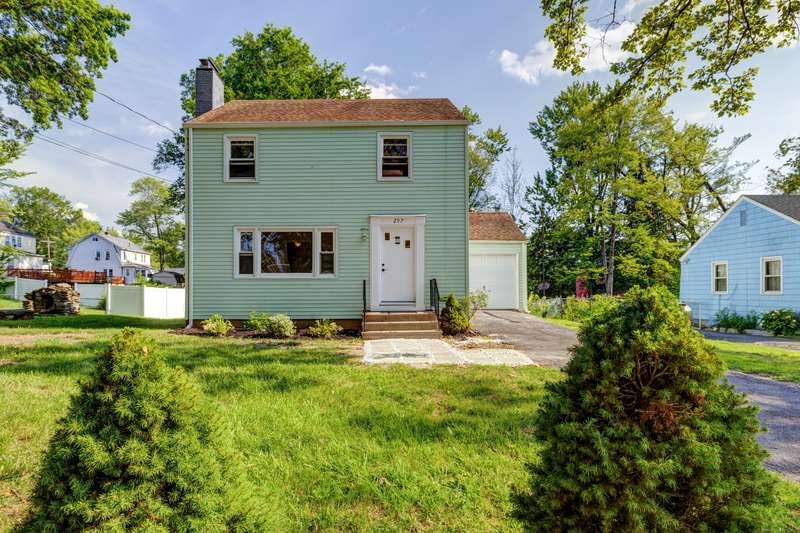 Welcome to 297 Branford Street, nestled in the desirable Blue Hills neighborhood! Step inside to find fresh paint throughout! Walk in to the welcoming living room boasting a charming fireplace and crown molding that flows seamlessly into the main level. The spacious kitchen boasts tile flooring, new backsplash, and an adjacent dining area with hardwood floors leads to the rear deck, overlooking a sprawling backyard ideal for gatherings and relaxation. Upstairs, you'll find hardwood floors throughout, two spacious bedrooms, and an updated full bathroom. A bonus room off one of the bedrooms offers flexible space for a home office, nursery, or creative retreat-let your imagination run wild! The basement provides ample storage space along with washer/dryer hookups. Outside, enjoy a level yard with a patio area and a one-car garage. Don't miss this fantastic opportunity-schedule your private showing today!
