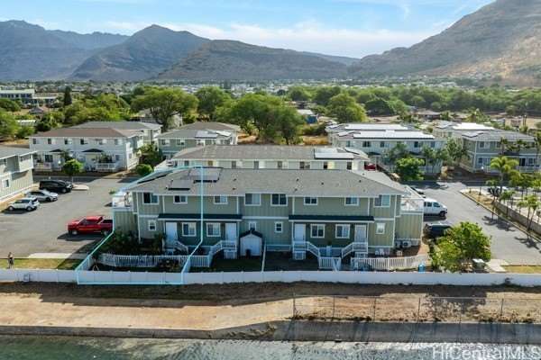 Seller offering $12,000 credit toward an interest rate buydown or buyer closing costs! Looking for a spacious 4-bedroom, 3-bath home near the beach with solar power? Welcome to this rare single-family-style townhouse in Maili Beach Place, offering 4 parking spaces, two lanais, and 2 small yards for outdoor living. A full bedroom and full bath on the first floor make it ideal for multi-generational living or hosting guests. The upstairs primary suite features a larger lanai with beautiful sunset views-perfect for entertaining or unwinding at the end of the day. This home includes 22 owned PV panels and 3 battery backups to help lower your electricity costs. Enjoy community amenities like the association pool and jacuzzi, or head to the beach just minutes away for swimming, surfing, and sunsets.