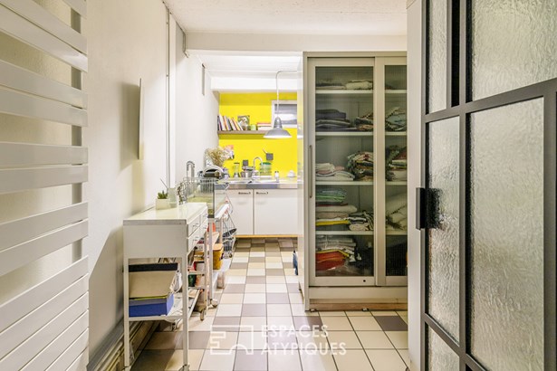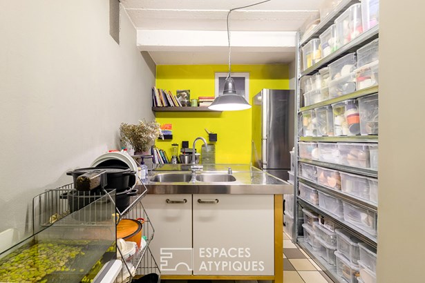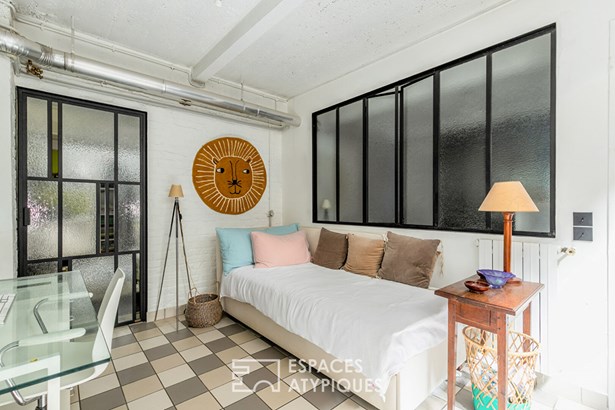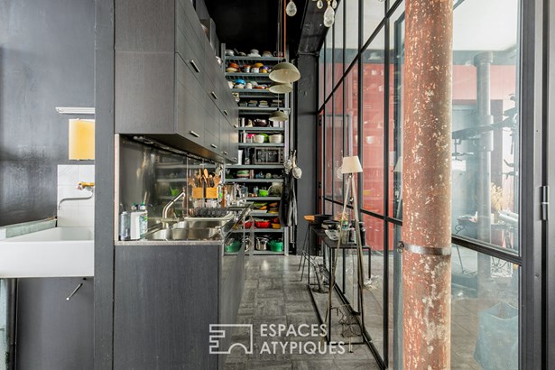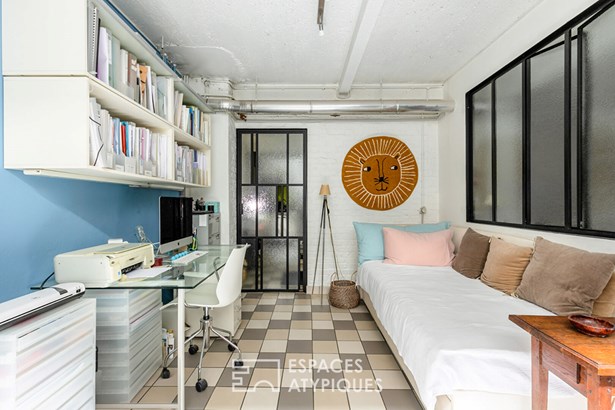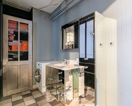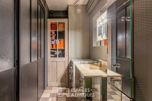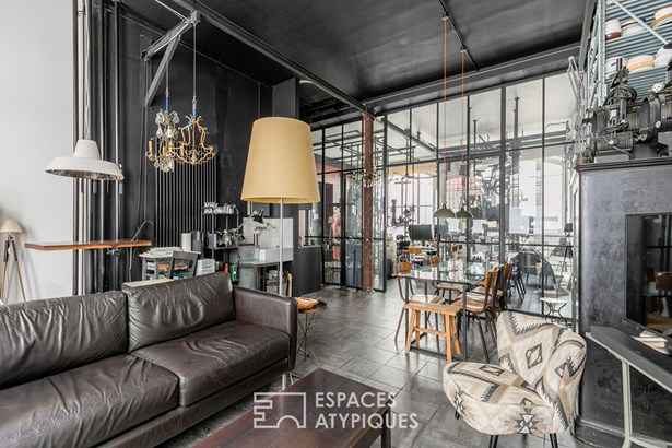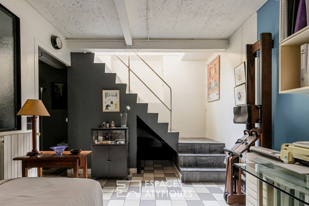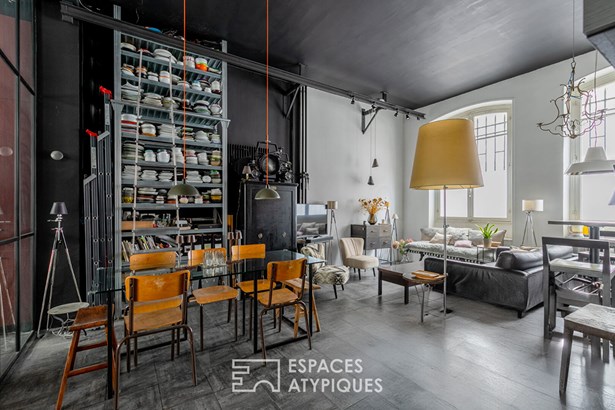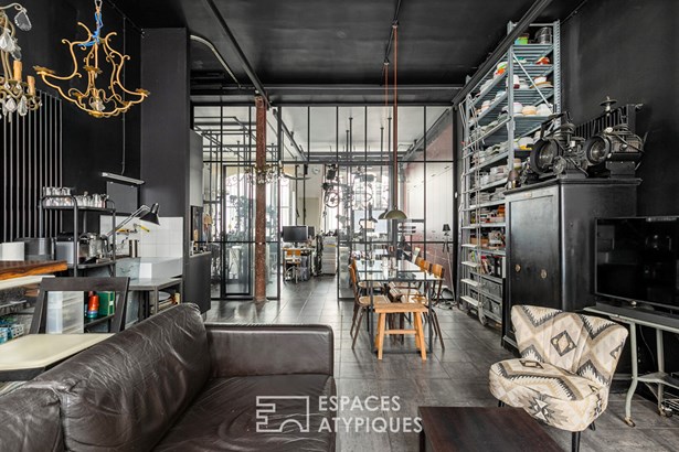Located in the heart of Paris's 11th arrondissement, this 115 m2 loft (69.01 m2 Carrez law) was redeveloped from a former auto repair shop and offers a unique living environment combining industrial charm and contemporary comfort.