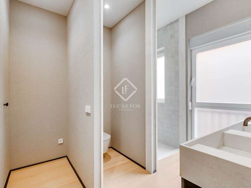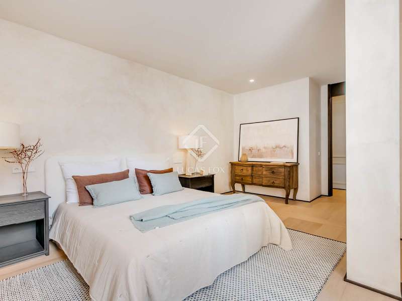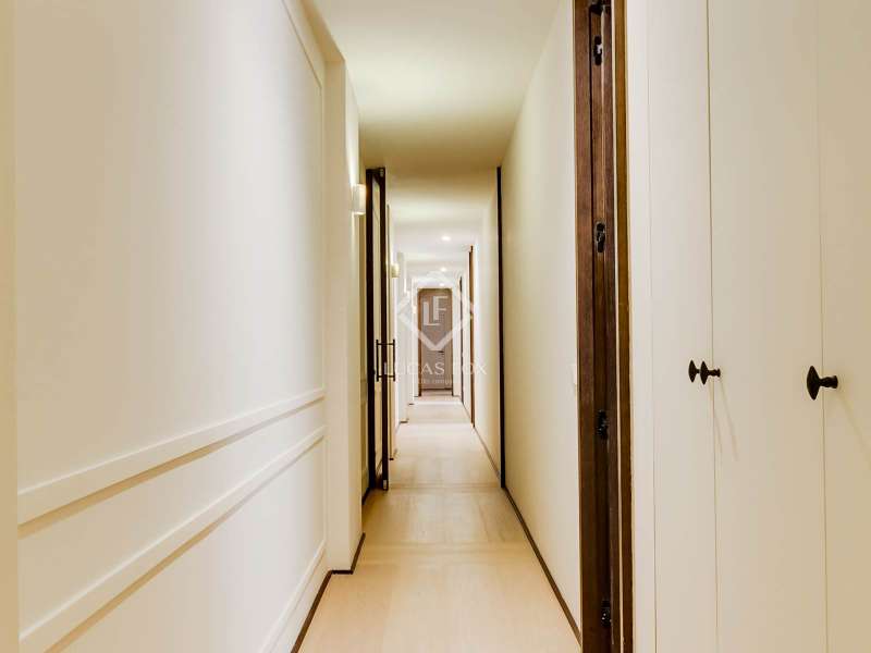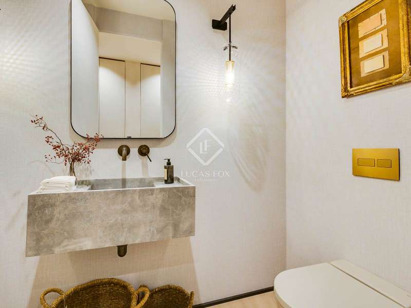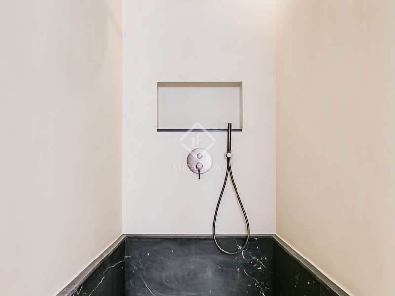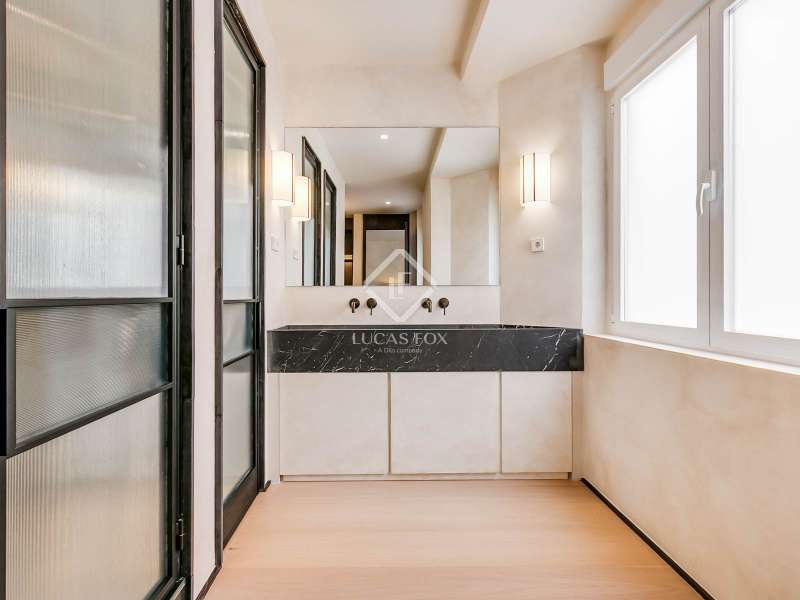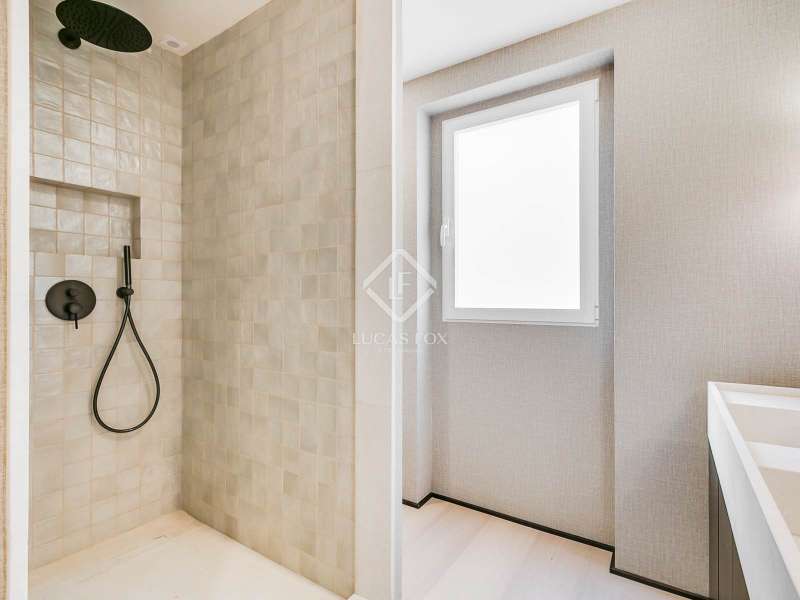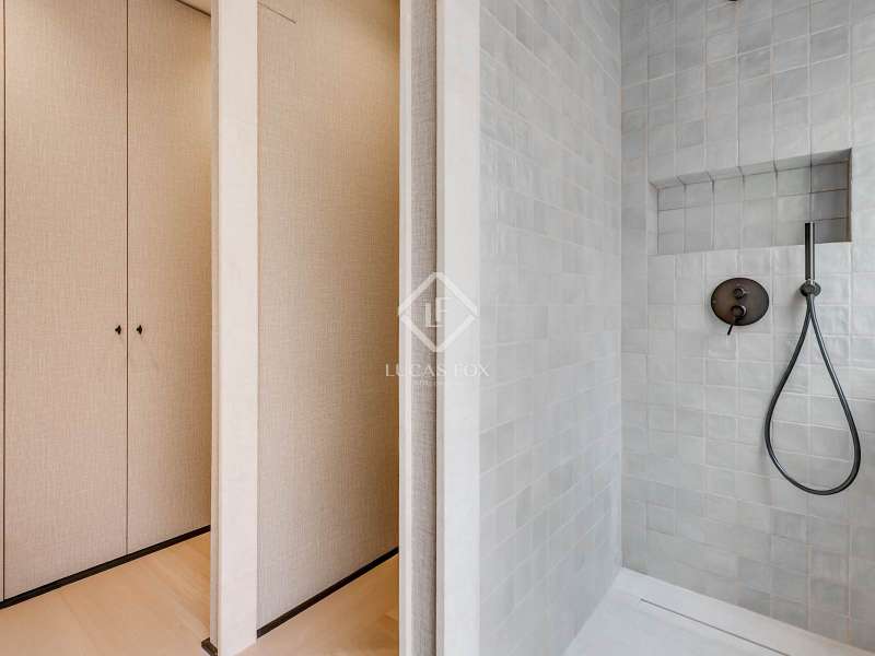 Lucas Fox presents this elegant renovated apartment located on the coveted Almagro Street, in the heart of the Chamberí district, one of Madrid's most distinguished residential areas . This exclusive property is located on the fourth floor and offers 303 m² of built area, with a thoughtful layout that combines spaciousness, light, and functionality. The property has four bedrooms and five bathrooms. Three of the bedrooms are doubles, each with its own private bathroom and walk-in closet, while the fourth, a single, is perfectly suited as a staff bedroom, study , or additional space depending on the owner's needs. Two separate bathrooms complete the night area . The day area features a spacious living-dining room, a generous space filled with natural light thanks to its large windows and northwest exposure. From here, you can access a pleasant 7 m² private terrace, ideal for relaxing. The property is completed with a double parking space and a storage room, included in the price, which offers added value of comfort and practicality in this central location. This apartment is located on a quiet, tree-lined street, yet offers immediate access to all amenities, shopping areas , restaurants, and transport links. It offers the best of Chamberí: a sophisticated residential area in the heart of Madrid, with the city's vitality just steps away.