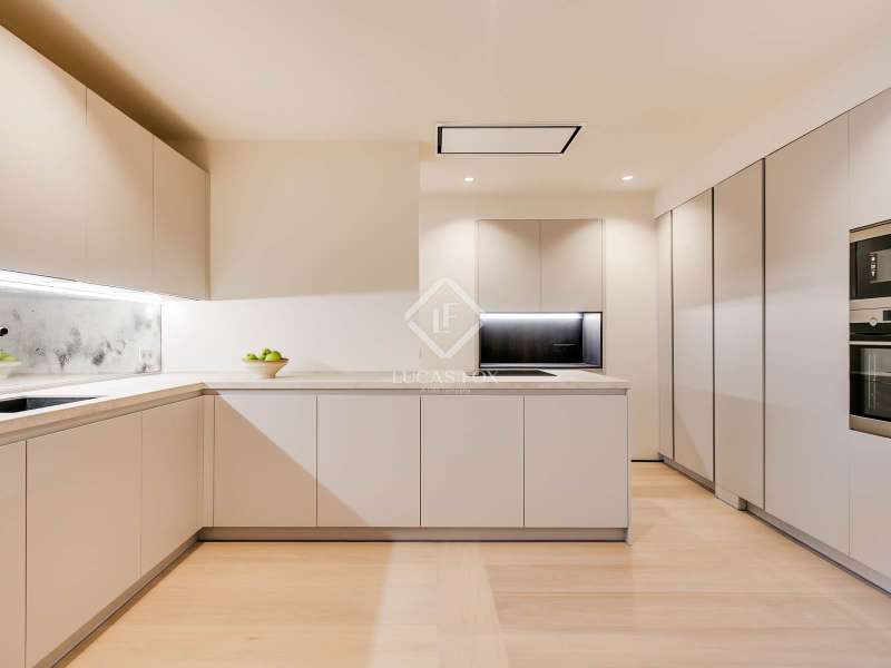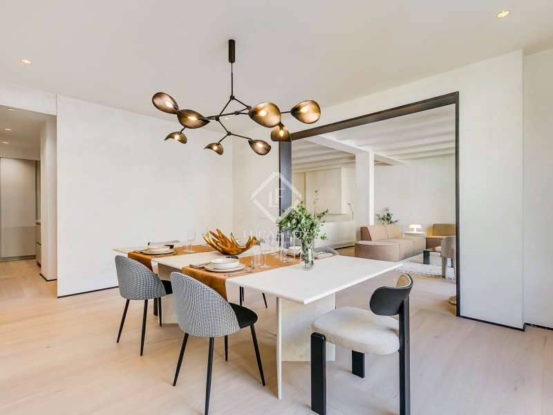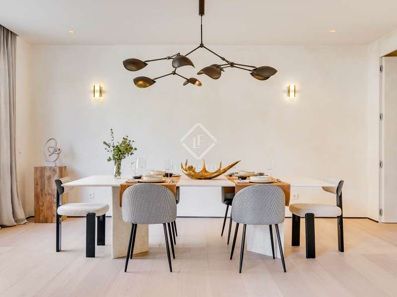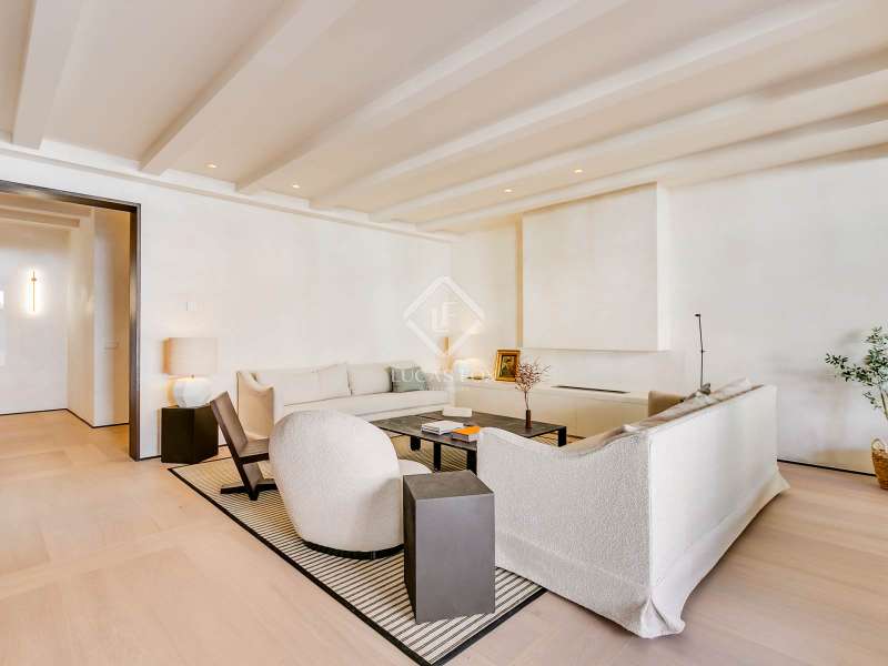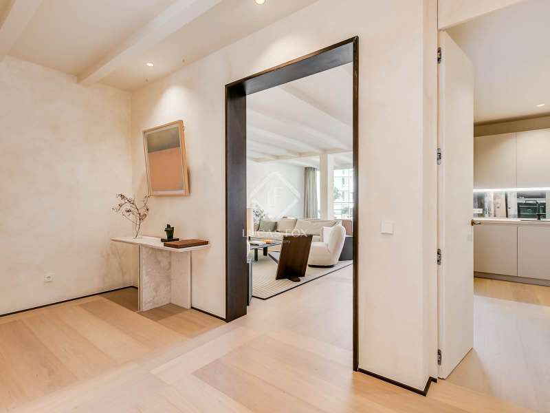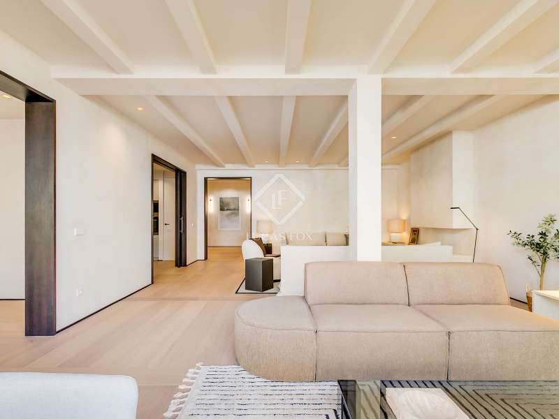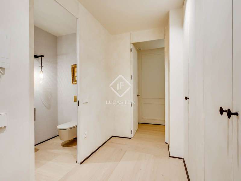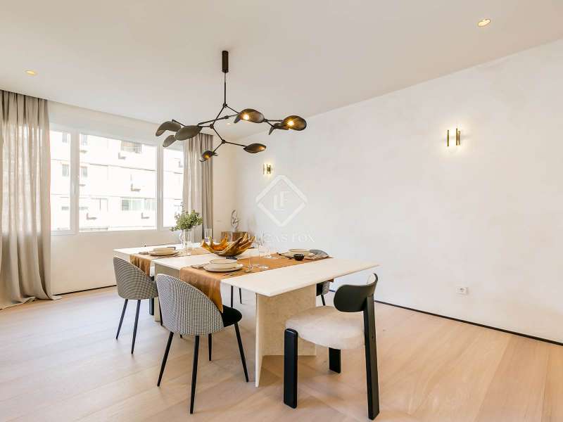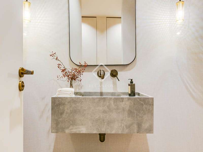 Lucas Fox presents this elegant renovated apartment located on the coveted Almagro Street, in the heart of the Chamberí district, one of Madrid's most distinguished residential areas . This exclusive property is located on the fourth floor and offers 303 m² of built area, with a thoughtful layout that combines spaciousness, light, and functionality. The property has four bedrooms and five bathrooms. Three of the bedrooms are doubles, each with its own private bathroom and walk-in closet, while the fourth, a single, is perfectly suited as a staff bedroom, study , or additional space depending on the owner's needs. Two separate bathrooms complete the night area . The day area features a spacious living-dining room, a generous space filled with natural light thanks to its large windows and northwest exposure. From here, you can access a pleasant 7 m² private terrace, ideal for relaxing. The property is completed with a double parking space and a storage room, included in the price, which offers added value of comfort and practicality in this central location. This apartment is located on a quiet, tree-lined street, yet offers immediate access to all amenities, shopping areas , restaurants, and transport links. It offers the best of Chamberí: a sophisticated residential area in the heart of Madrid, with the city's vitality just steps away.