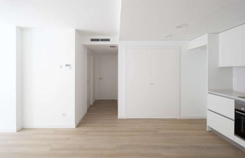 The apartment features a modern closed-plan kitchen with fully equipped appliances, a shower cabin, an en-suite bathroom, a balcony, a satellite TV system, and a spacious dressing room. Designed with energy efficiency in mind, the project stands out for Terrassa's blend of social amenities and natural surroundings, offering a lifestyle connected to both community and nature.