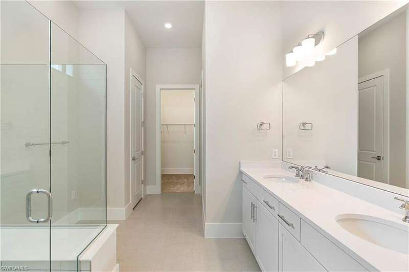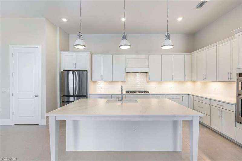 Be the first to live in this stunning new construction home in Caymas, one of Naples' most desirable and up-and-coming communities. This beautifully designed Brixton model offers 2,366 sq. ft. of luxurious living space with 3 bedrooms plus a den, 3 full bathrooms, and a variety of thoughtfully selected upgrades throughout. From elegant quartz countertops and premium cabinetry to custom lighting and designer finishes, every detail has been carefully curated to offer both comfort and sophistication. The spacious owner's suite includes a large walk-in closet and a spa-inspired bathroom featuring dual vanities and a frameless glass shower. The open-concept layout seamlessly connects the modern kitchen and living area to an extended lanai, creating the perfect space for entertaining. Step outside to enjoy a built-in outdoor kitchen and a custom heated pool and spa, all overlooking peaceful water views. Additional features include hurricane-impact windows, soaring 11'4" ceilings, an epoxy-coated garage floor, and refined lighting and fixtures throughout the home. Ideally located near Naples' pristine beaches, world-class shopping and dining, and just a short drive to Marco Island, this home is the perfect blend of luxury, functionality, and location. Don't miss the opportunity to make this exceptional property your own.