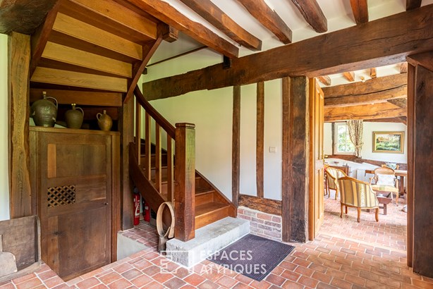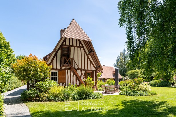 The estate is organized around two independent half-timbered buildings, dismantled in the Pays de Caux region and rebuilt identically in the 1970s.