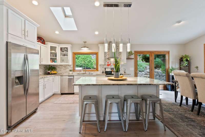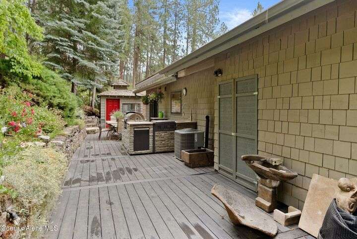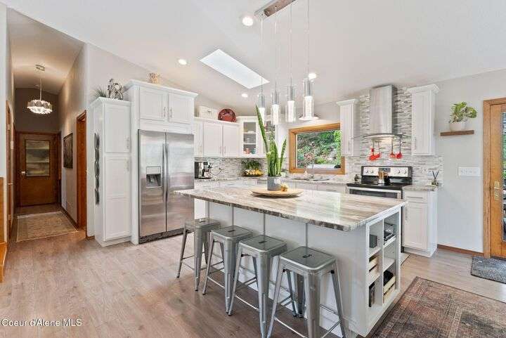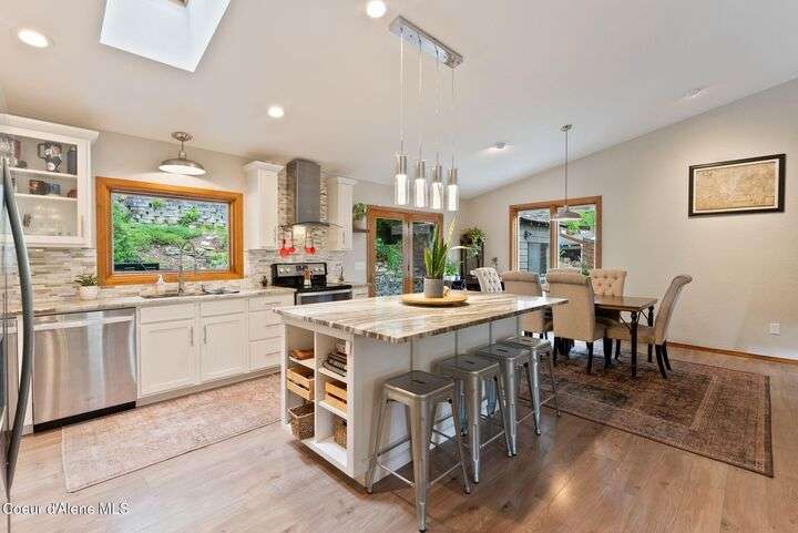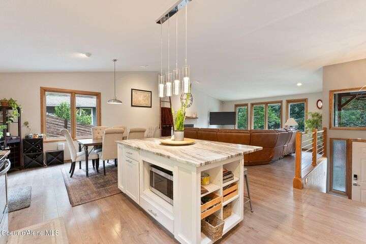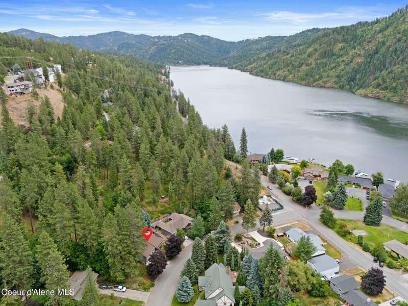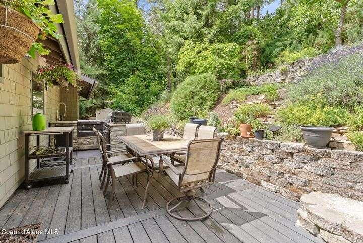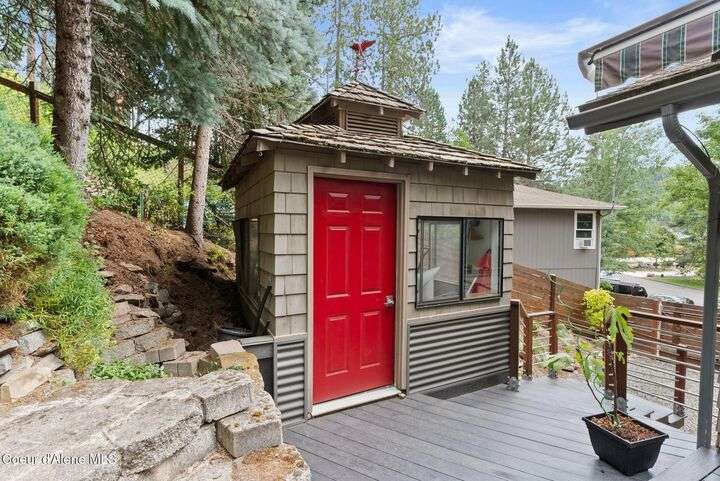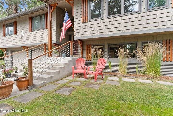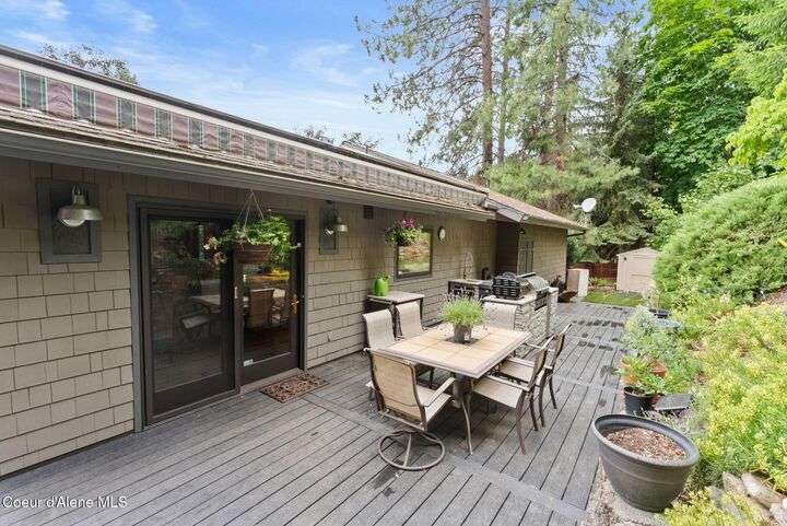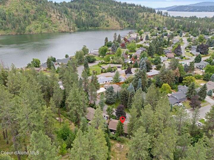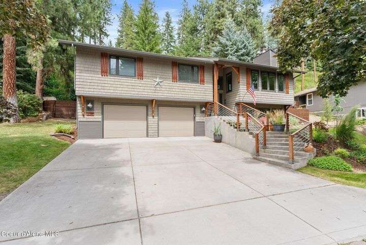 Elevated privacy in an incredible location, just moments to downtown Coeur d'Alene, yet tucked away in the quiet Fernan Terrace neighborhood that feels out-of-town. This 4-bed, 3-bath home underwent an extensive remodel with vaulted ceilings, skylights, and wood Pella windows with internal blinds for a clean, modern look. Epi (ironwood) exterior accents make a bold impression leading to the grand front entry. Offered fully furnished if desired, it's ideal for a vacation or executive rental. Features include smart TVs in multiple rooms, whole-house audio, select lighting control, and a security system. The .44-acre lot has space to expand landscaping or add an outbuilding, with mature plum, cherry, and apple trees and peekaboo lake views. Fernan Lake boat launch and park are just blocks away, along with the Centennial Trail. Enjoy nearby cafes and restaurants, quick access to I-90, and only 40 minutes to Spokane International Airport for convenient North Idaho living.