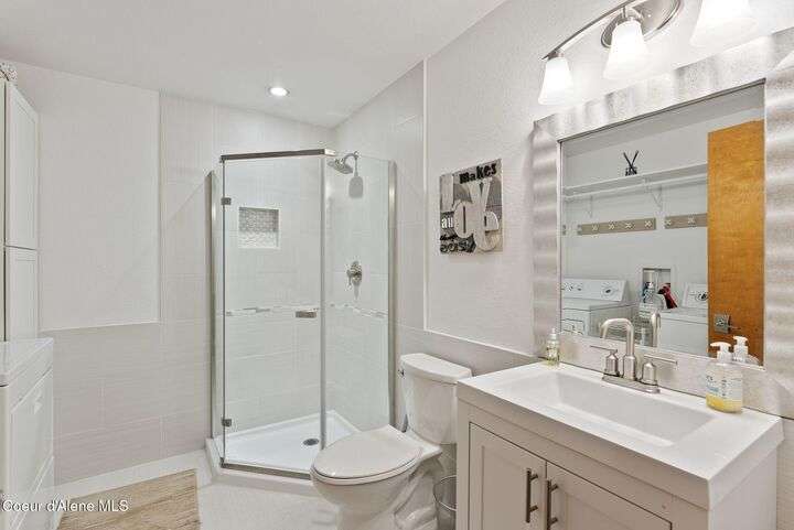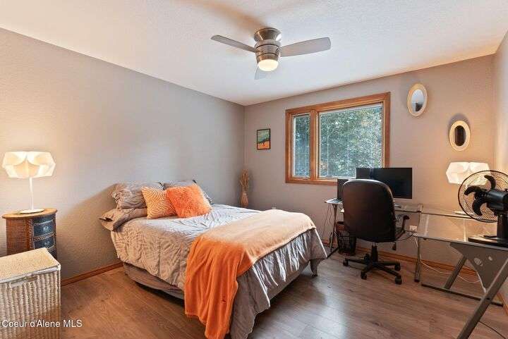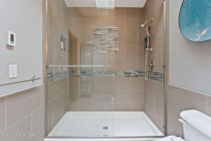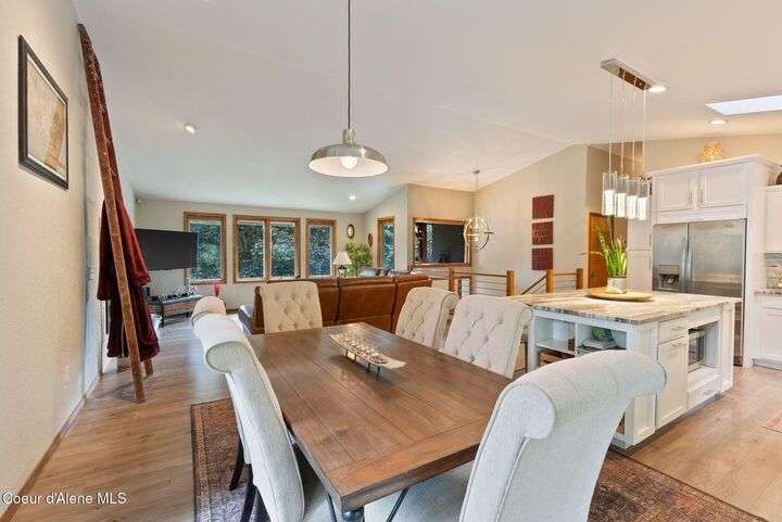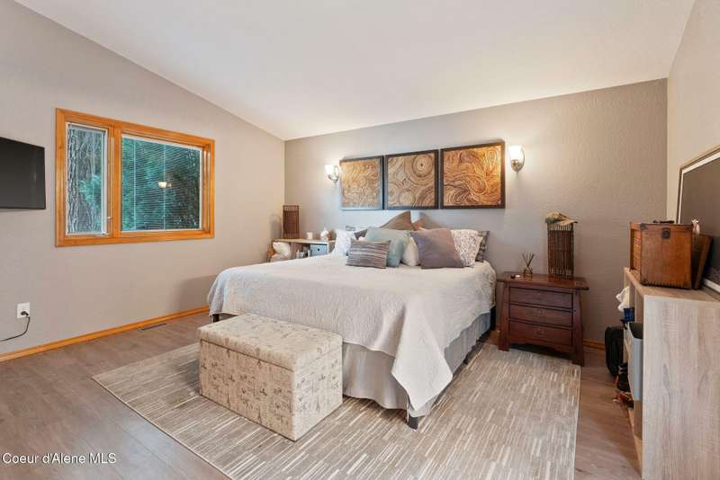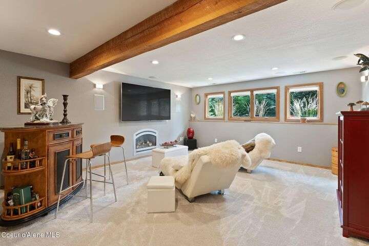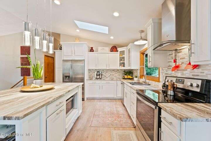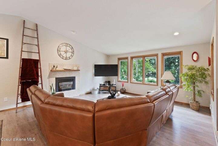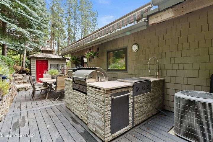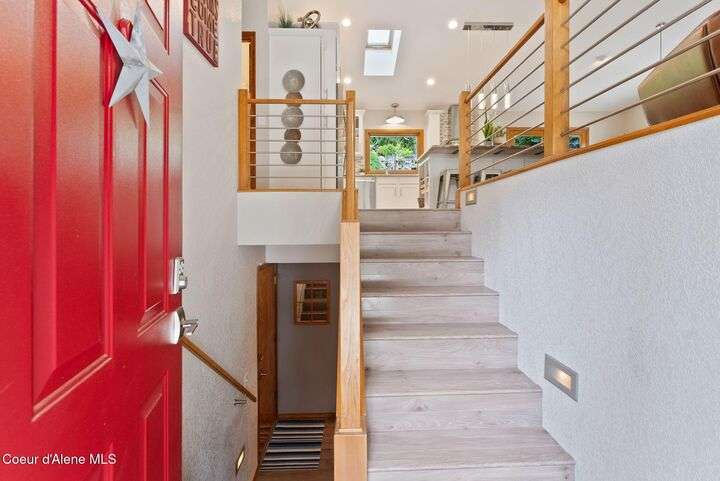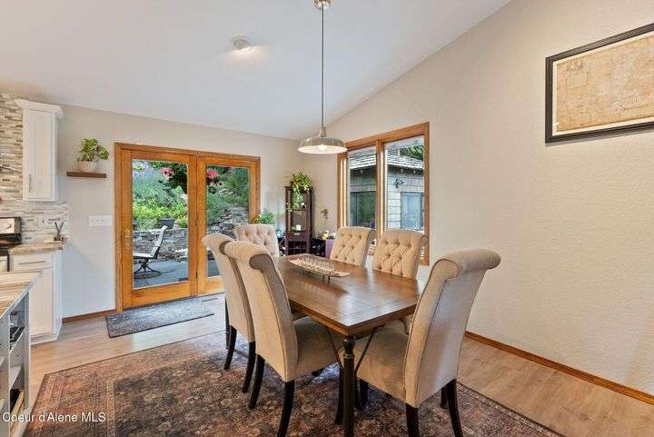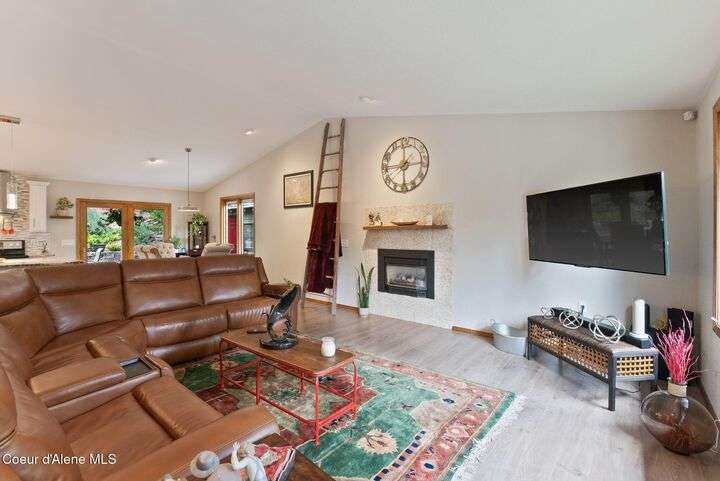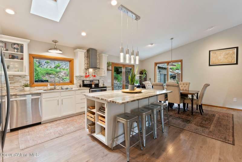 Elevated privacy in an incredible location, just moments to downtown Coeur d'Alene, yet tucked away in the quiet Fernan Terrace neighborhood that feels out-of-town. This 4-bed, 3-bath home underwent an extensive remodel with vaulted ceilings, skylights, and wood Pella windows with internal blinds for a clean, modern look. Epi (ironwood) exterior accents make a bold impression leading to the grand front entry. Offered fully furnished if desired, it's ideal for a vacation or executive rental. Features include smart TVs in multiple rooms, whole-house audio, select lighting control, and a security system. The .44-acre lot has space to expand landscaping or add an outbuilding, with mature plum, cherry, and apple trees and peekaboo lake views. Fernan Lake boat launch and park are just blocks away, along with the Centennial Trail. Enjoy nearby cafes and restaurants, quick access to I-90, and only 40 minutes to Spokane International Airport for convenient North Idaho living.