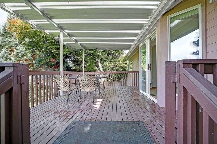 Beautiful Rambler in Gated Camaloch Golf community on North Camano Island, with brand-new roof and a Sanctuary Back-Yard! Vaulted, open main floor-living with covered outdoor patio. Large 3-bay tandem garage w/ golf cart door & shop space. Primary suite w/ walk-in closet and attached bath. Office w/ dual french doors and high-speed broadband internet. Fenced backyard is incredible; Mature landscaping with shade trees, pathways and sitting areas. Large garden-shed with power, for optional shop/storage space. New central gas Furnace 2024. Community pool across the street, plus unlimited golf for family, lake for fishing. Restaurants, parks, shopping, salt-water beaches all surround you, yet just minutes to I-5. Just Listed, Welcome Home!