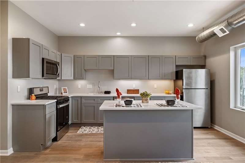 Welcome Industrial Commons, Lawrenceville's new luxury condo development. Conveniently located to Butler Street, Children's Hospital, The Strip District, Downtown, Oakland and Shadyside. This 1 bedroom, 1 bathroom West facing unit was designed to blend the mechanical features of loft living while offering high end modern features. Open floor plan, hardwood flooring, designer kitchen cabinets, large kitchen island, stainless steel appliances, ample closet space, high ceilings, and lots of natural throughout. City views. Deeded parking space with each unit. Pet friendly building, 24- hour security system and 24-hour property management. The industrial style lobby offers additional work from home / meeting space, bike racks. 10-year act 42 tax abatement available.