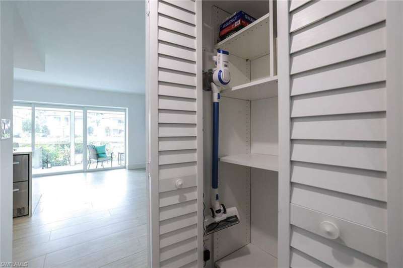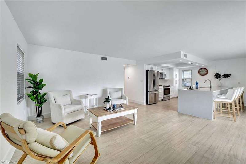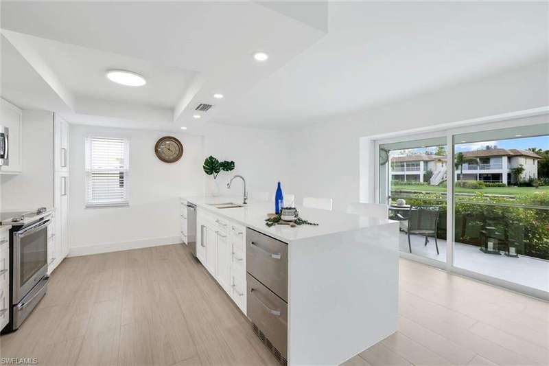 From the moment you step inside, the open-concept layout draws you into a bright, airy living space centered around a stunning all-white kitchen with a quartz waterfall island, sleek new appliances, and a beverage cooler - ideal for entertaining or relaxed everyday living. Every system and surface has been upgraded to the highest standard: new electrical, plumbing, ductwork, and a fully upgraded ventilation system. Added premium rubber soundproofing throughout ensure tranquility in every room. Gorgeous plank tile flooring delivers a seamless, contemporary aesthetic that's both durable and elegant. The primary suite impresses with a spacious walk-in closet and a luxurious spa-like bathroom, while the guest bedroom enjoys private en-suite access for ultimate convenience. Hurricane-impact, insulated, and tinted windows and sliders bathe the home in natural light while maintaining energy efficiency and peace. Unwind on the stylishly tiled, screened lanai overlooking the serene lake - the perfect setting for morning coffee or sunset cocktails. Thoughtful touches like additional electrical outlets, a tankless water heater, LED-lit bathroom fans with built-in Bluetooth speakers, and illuminated mirrors bring everyday luxury to life. Nestled in a peaceful neighborhood with two convenient parking spaces, a private storage unit, and a PRIME NAPLES LOCATION just minutes from the beach, 5th Avenue, and Naples Bay, this residence is more than a home -it's a lifestyle. Elegant and move-in ready, it invites you to experience the very best of Naples living!