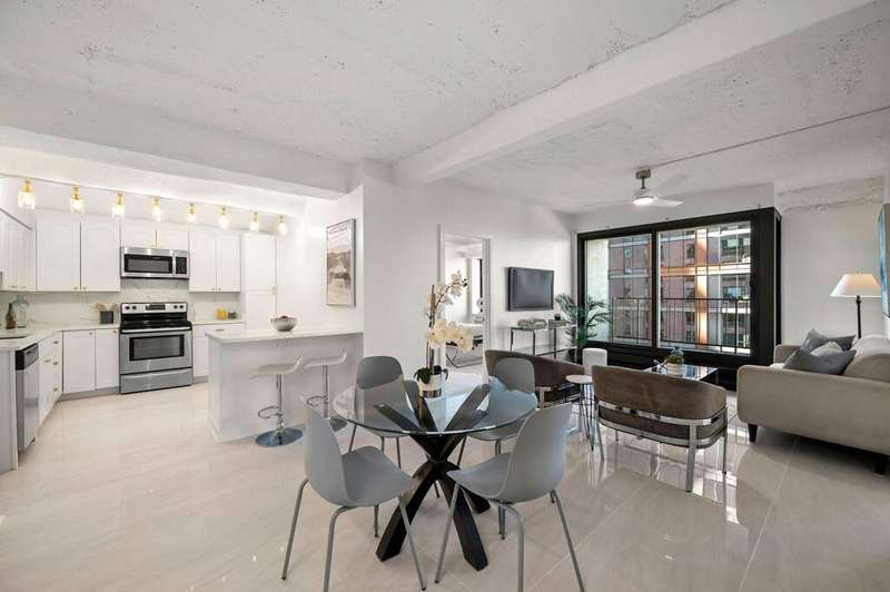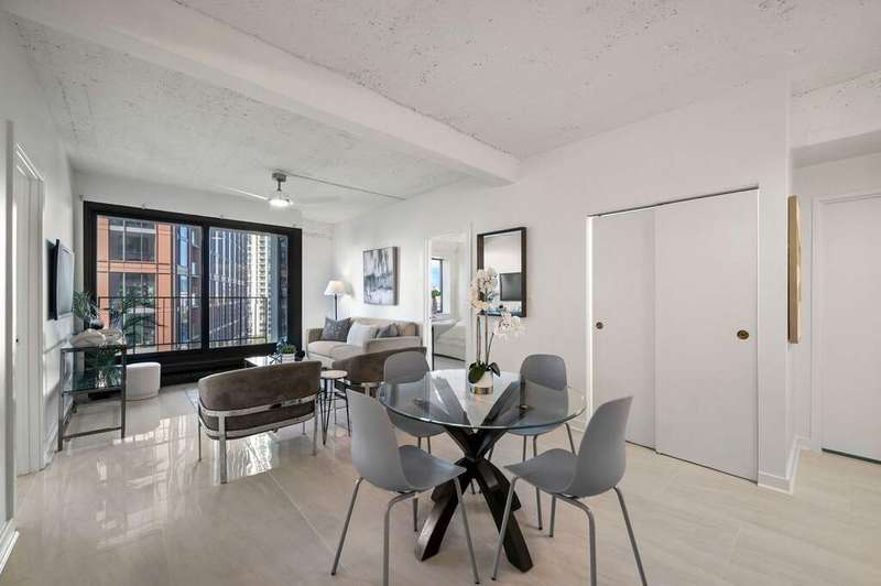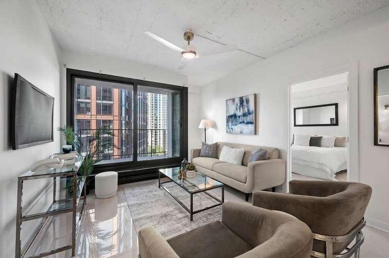 Luxury redefined in the iconic Fulton House, perfectly positioned along the Chicago River in vibrant River West. This stunning condo has been completely reimagined with designer finishes, including large-format porcelain tile flooring, dramatic Calacatta gold quartz countertops, custom lighting, and plush bedroom carpeting. The spa-inspired bathroom has been fully redesigned to deliver a sleek, modern retreat. Move-in ready with a fresh, elevated aesthetic, this residence pairs timeless architecture with contemporary comfort. Investor-friendly and ideally located just steps from the Riverwalk, acclaimed restaurants, shopping, and Chicago's most exciting nightlife. Valet parking available.