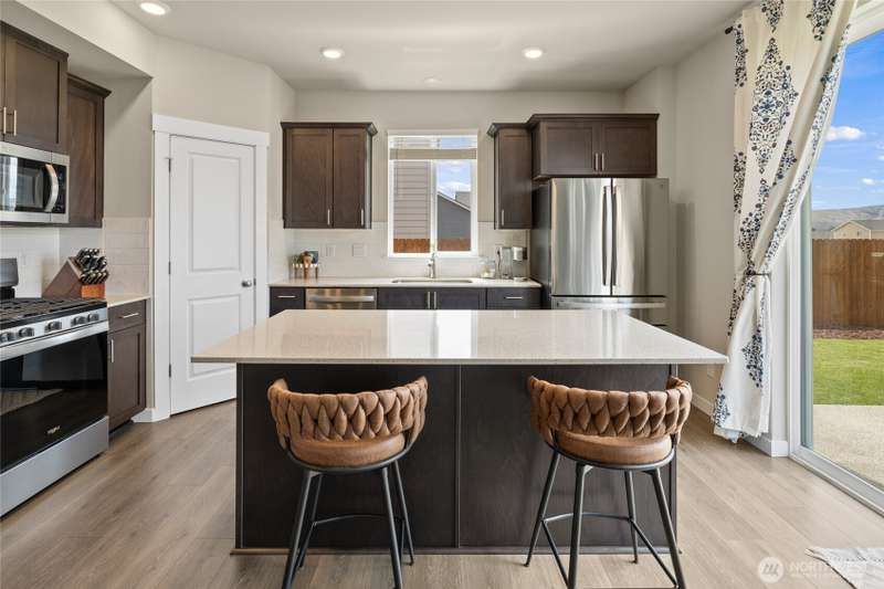 Located in the desirable Ridgeview neighborhood, this nearly new 5-bedroom, 3-bathroom home is beautifully designed and move-in ready. Enjoy open-concept living with 9-ft ceilings, quartz countertops, luxury vinyl plank flooring, a custom fireplace and guest bedroom all on the main level. Upstairs offers a versatile open loft, private primary suite, 3 guest rooms, full bath and laundry room. Smart home features provide comfort and security. The fully fenced, landscaped yard includes underground sprinklers in front and back and storage shed. The 3-car garage provides ample storage or hobby space. Conveniently located close to local amenities and easy I-90 access.