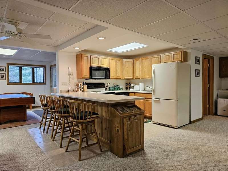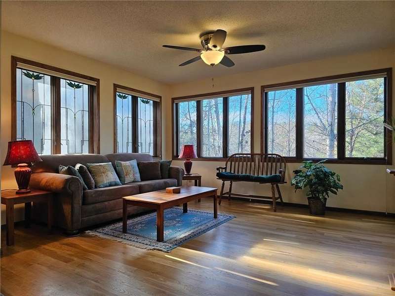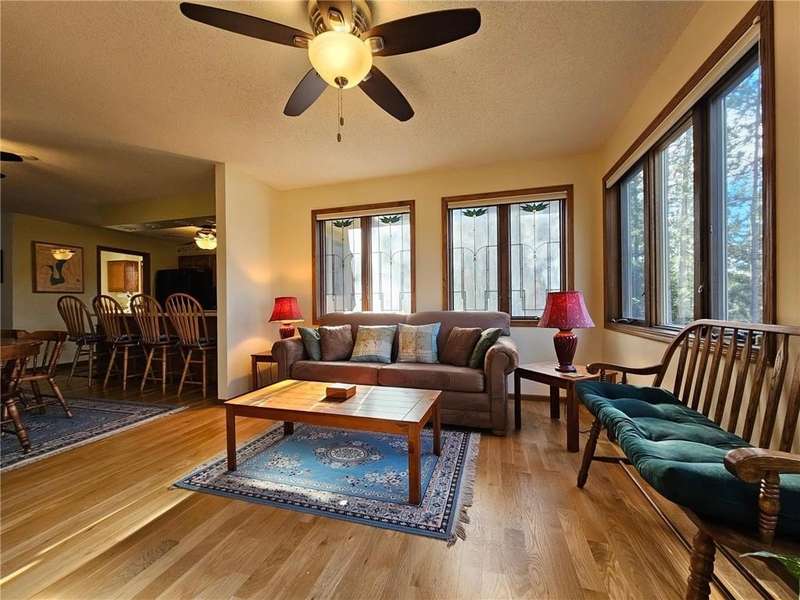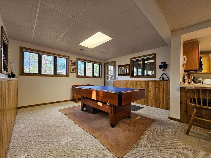 Custom built lake home with 100 feet of sandy shoreline on Gilmore Lake featuring 5+ potential bedrooms, 4 bathrooms and almost 4000 square feet! Highlights include an open floor plan with large sunroom overlooking the lake, a centerpiece brick fireplace with 2 built-in bookcases, 3 season cedar porch with access from the owners suite, and so much more! You will love the potential of the walkout lower level that includes a fully appointed second kitchen, large family room, dining area, 2+ bedrooms, 2 baths, a full laundry and a billiards room with views of the lake! Home is being sold completely furnished and move-in ready! New roof in 2025. Septic system currently sized for a 3BR home.