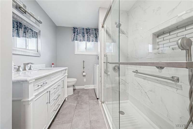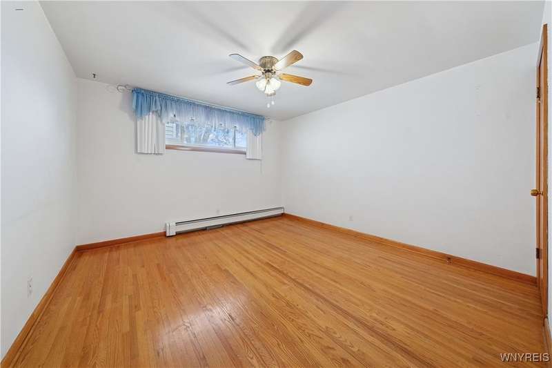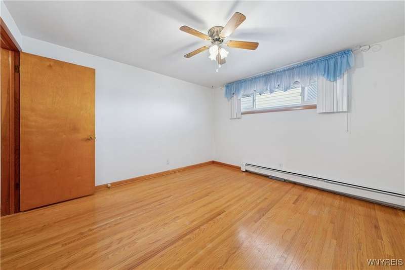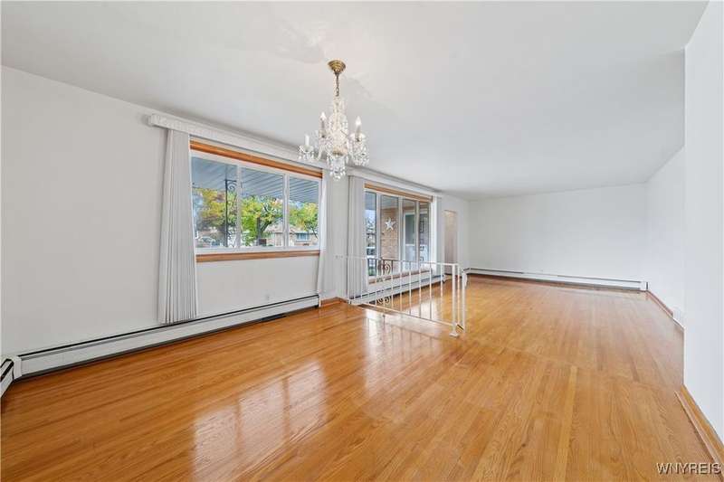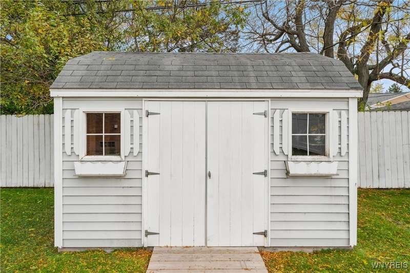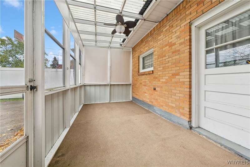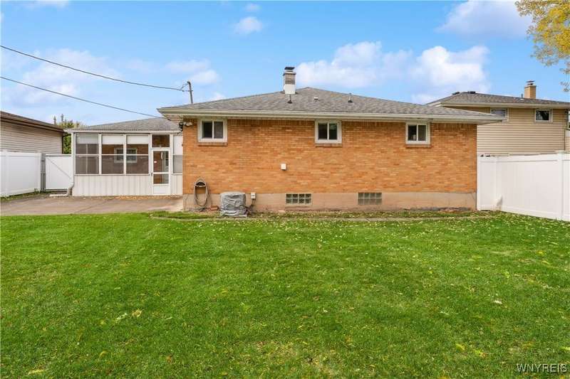 Welcome home to your hard to find 4 sides brick, 3br, 1.5 bth, 2 car garage RANCH in the heart of Town of Tonawanda! Updates include furnace (25) w/existing AC, vinyl windows throughout, some updated PVC and pex plumbing, vinyl fully fenced yard, leaf guard for gutters and more! Bright and airy living room, formal dining room and all 3 br's have beautiful oak hardwoods throughout, partially updated eat in kitchen w/oak cabinets, amazing full bath updated completely w/tile shower, marble top counters, toilet, flooring and lighting, first floor stackable laundry make for easy single floor living, BONUS, dry, poured finished full basement area adds over (35x15) 500 sq ft of living space, freshly painted, epoxy flooring, 1/2 bath, workshop area, as well as dry bar, glass block windows for security, so many places to chill outside that include Relaxing on your covered front porch, or on your open concrete porch in the fully fenced yard, or pour yourself some drinks in the 17x8 3 season room, storage shed for convenience, This one won't last!!
