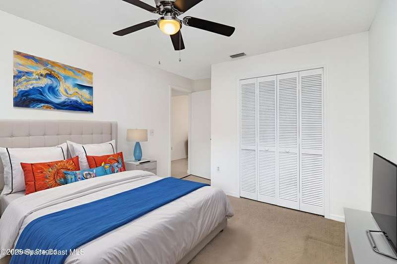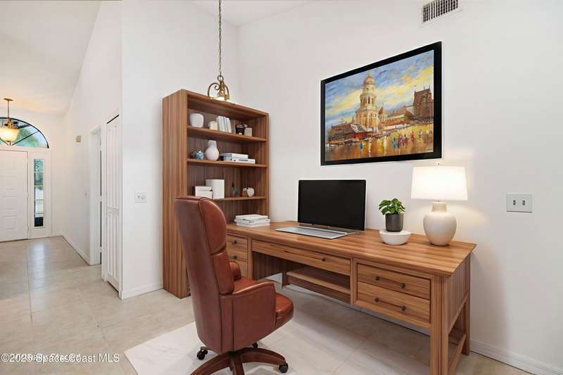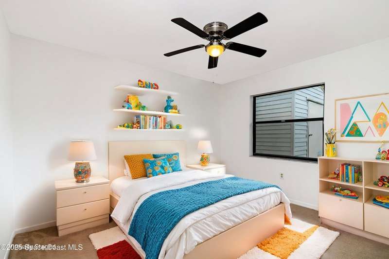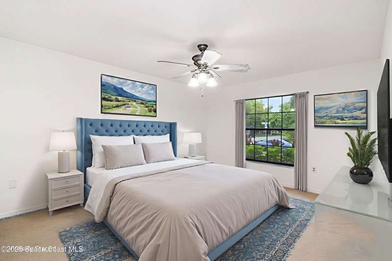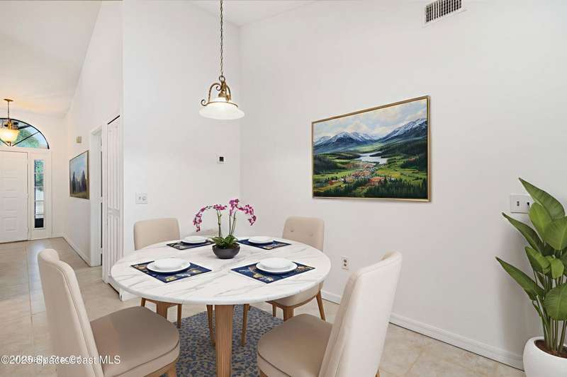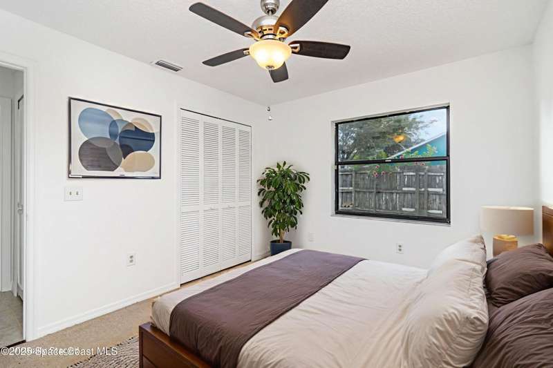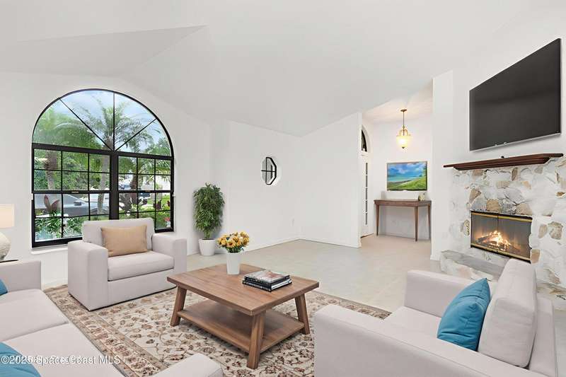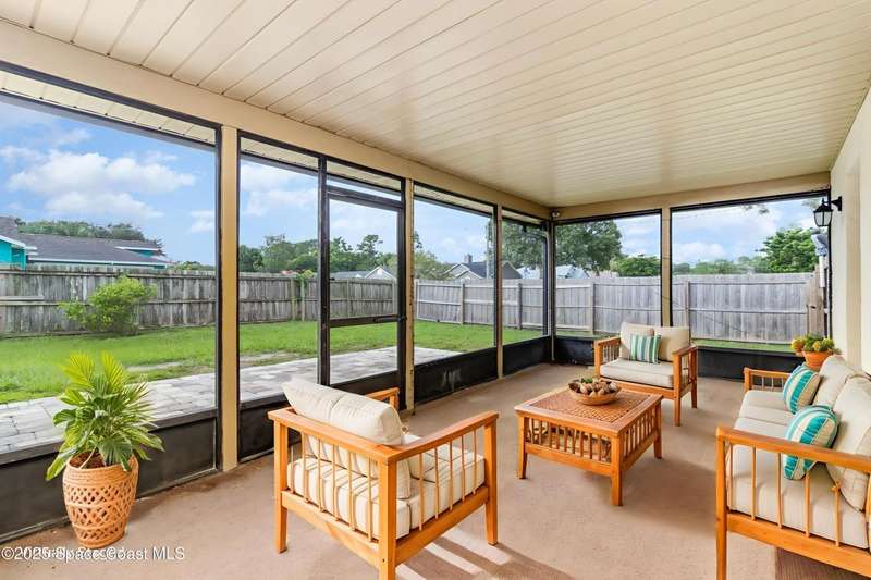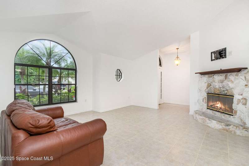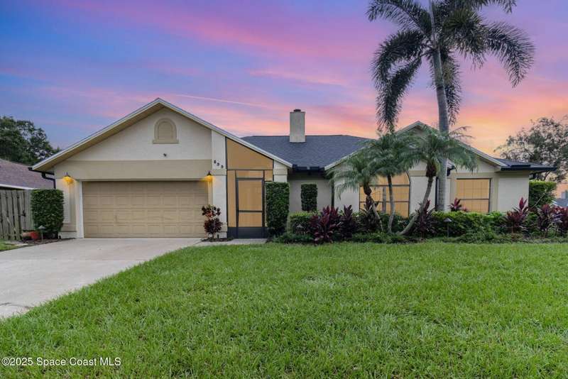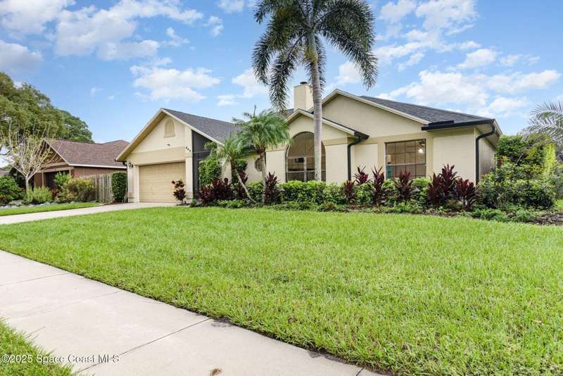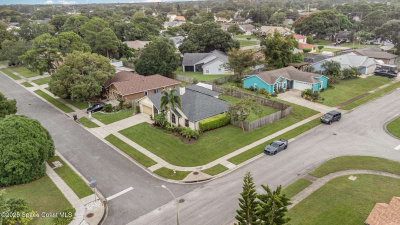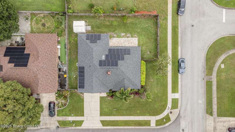 A true Pine Cove treasure?where comfort, character, and convenience come together beautifully in central Brevard County. 4-bedroom, 2-bath home sits gracefully on a spacious corner lot, beautiful landscaping and quiet streets. Built and lovingly maintained by the original owner, its filled with thoughtful touches that make it feel instantly comfortable and genuinely cared for. Step inside and youll find soaring vaulted ceilings, a cozy fireplace, and a split floor plan balances privacy with open gathering spaces. Natural light fills the home, while the expansive covered back patio invites you to unwind and enjoy private fenced yard. Energy efficiency paid-off solar panels (2022) and a new roof (2020). Large shed adds versatility?perfect for storage, gardening, hobbies, or even backyard workshop. Tucked within a quiet, non-home owners association community, location is ideal?close to the Space Center, Orlando, beaches. Outdoor lighting adds welcoming evening ambiance.